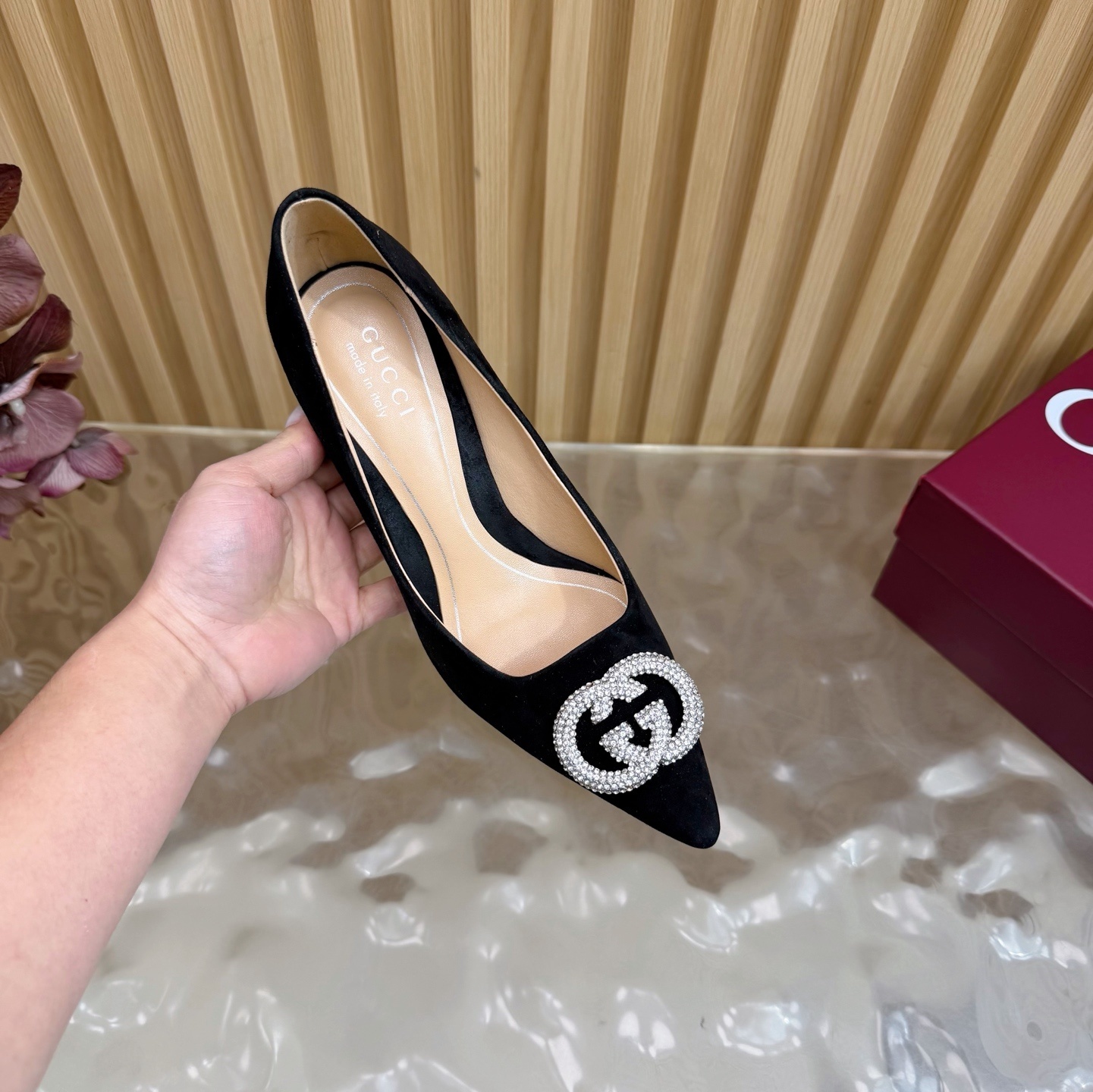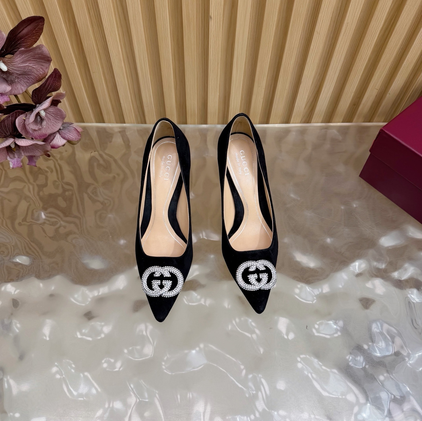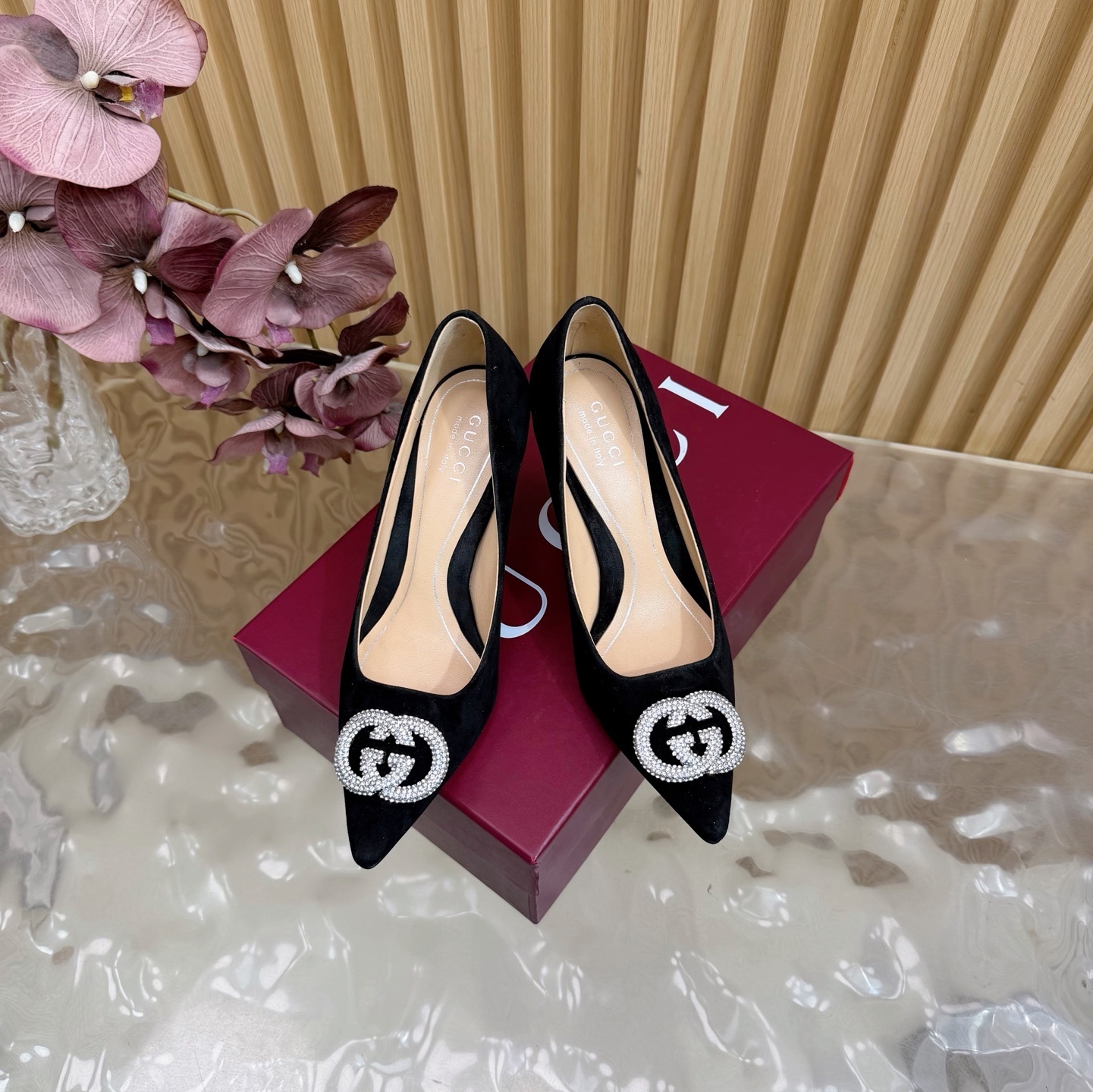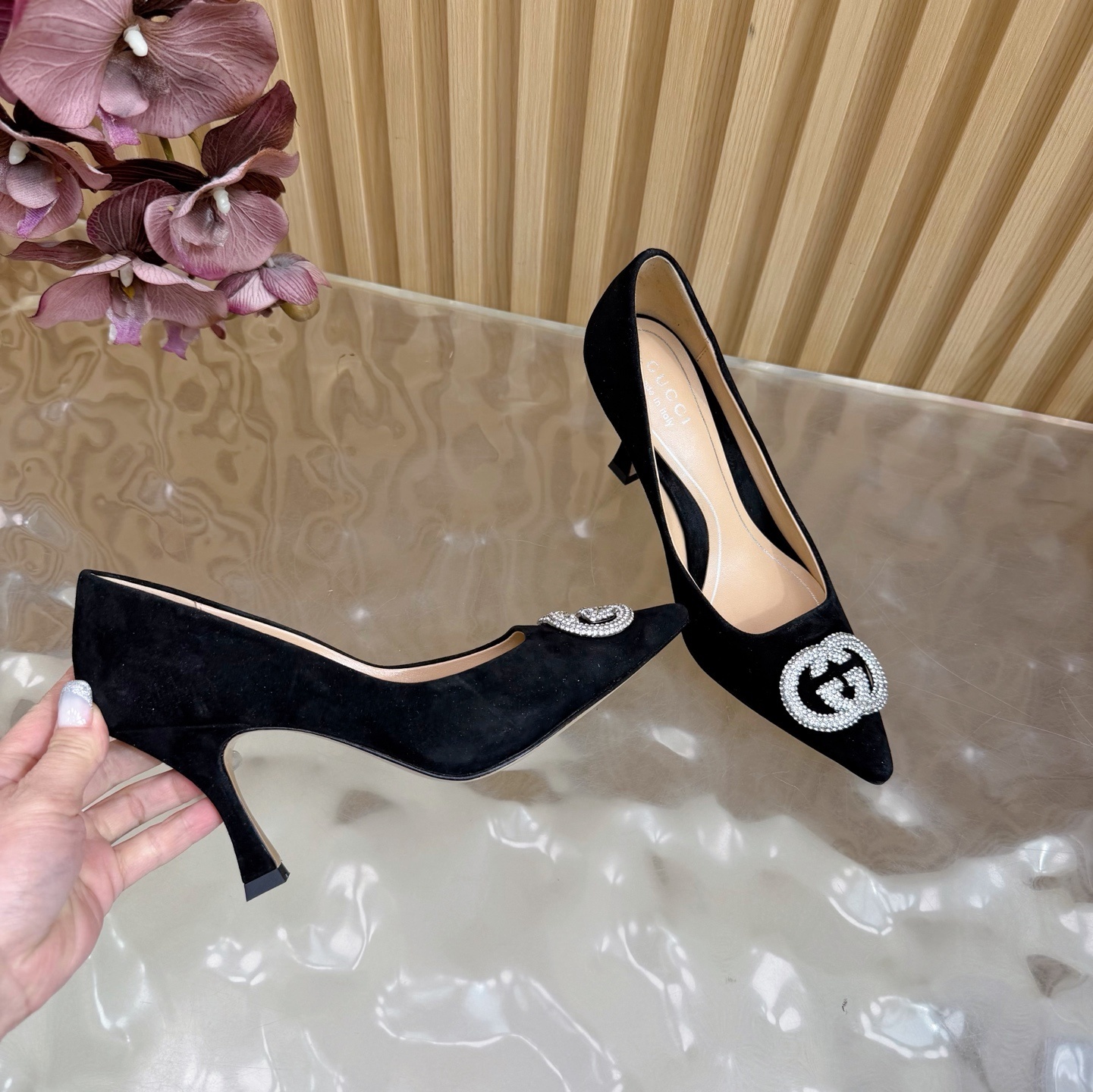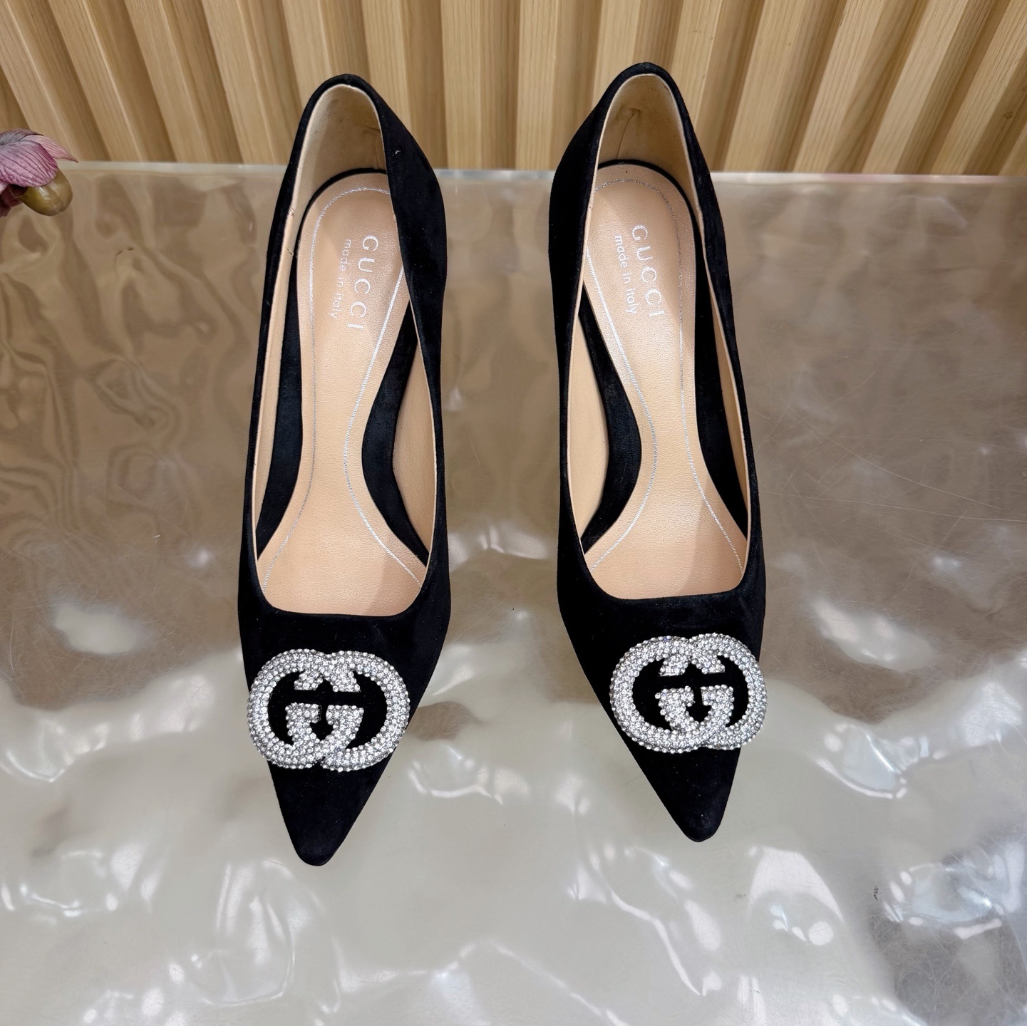 crystal Gucci Black Suede Pumps - Gucci Black Suede Pumps - Crystal GG