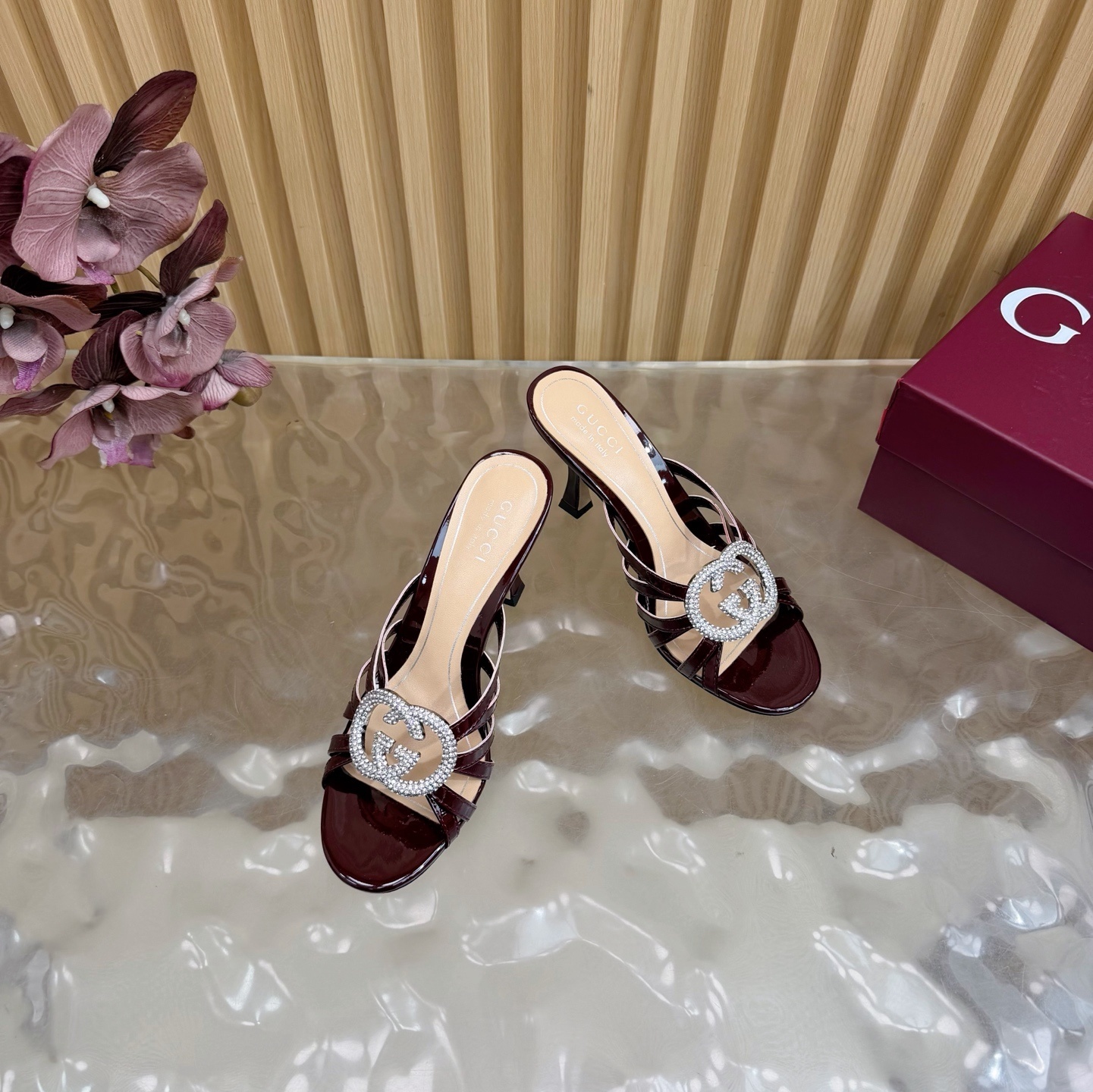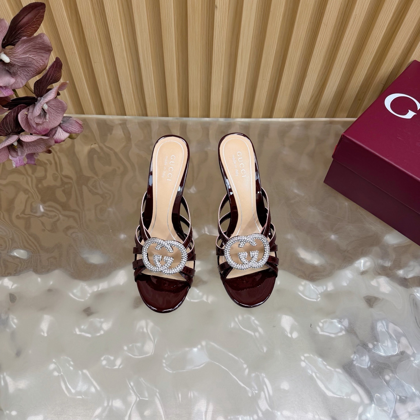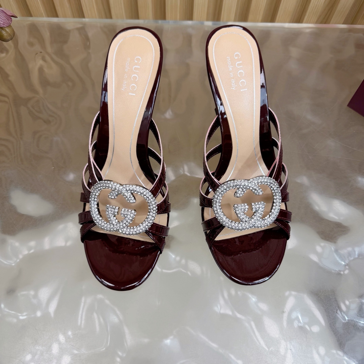crystal Gucci Burgundy Patent Leather Mules - Gucci Burgundy Patent