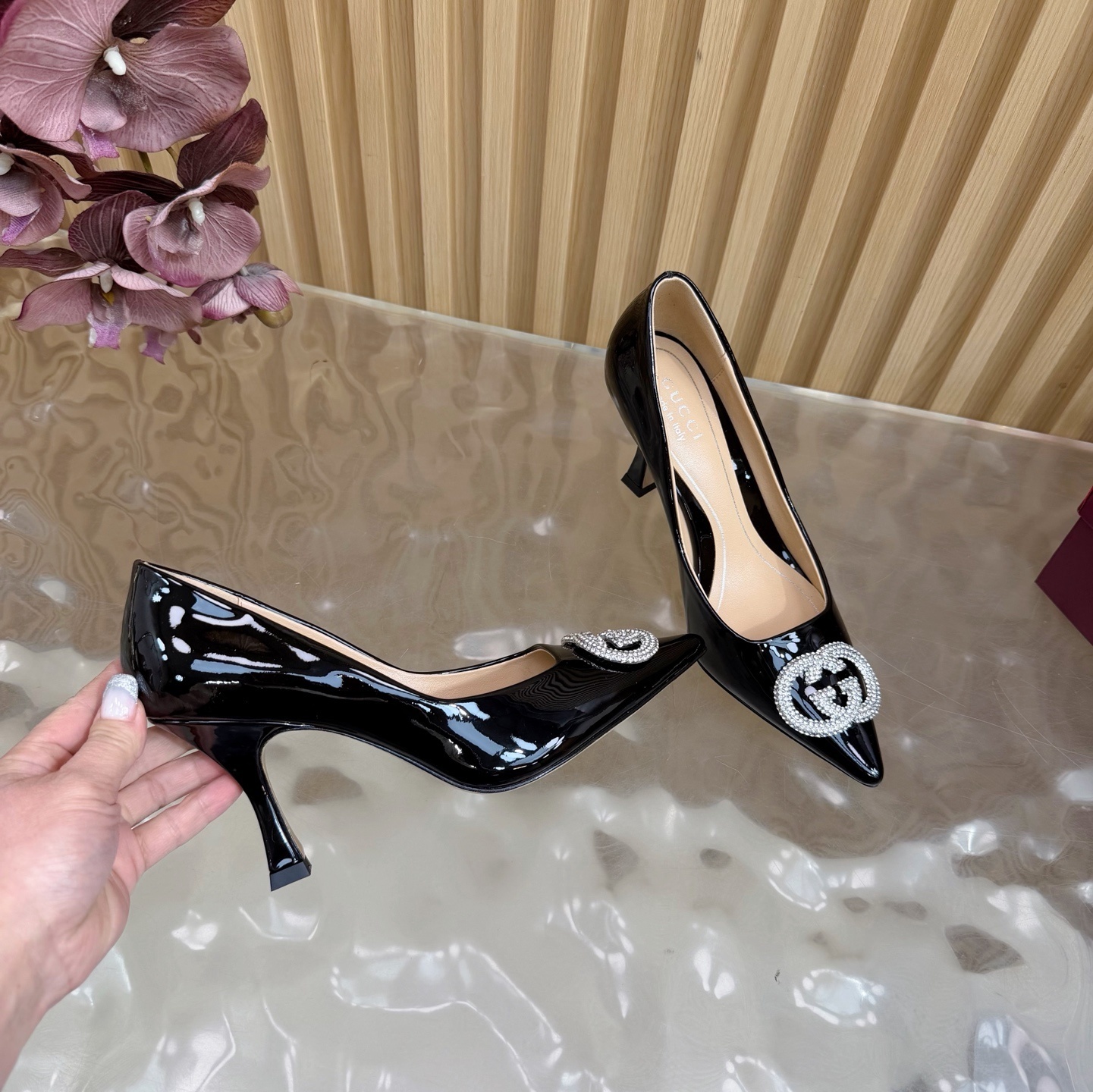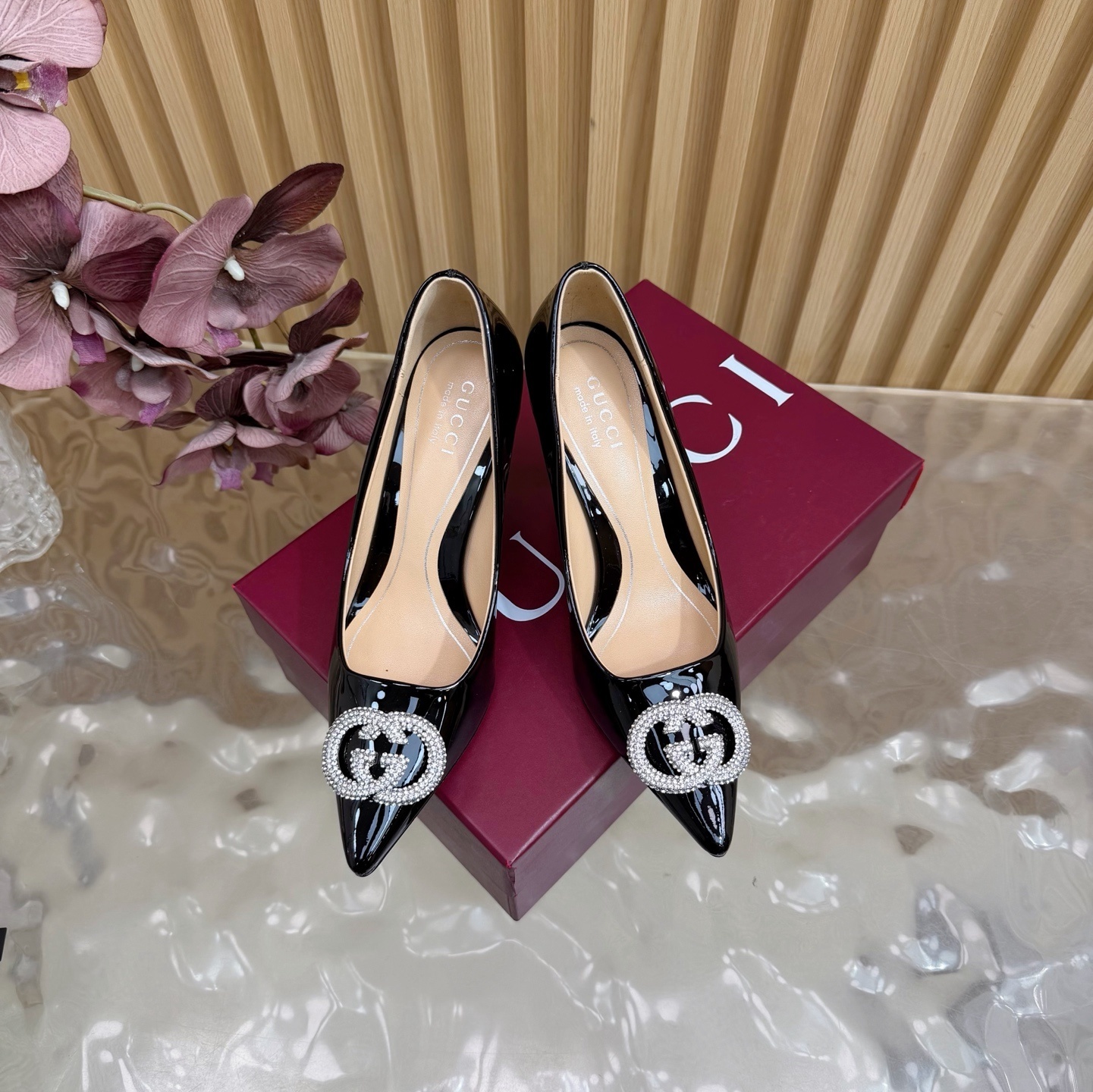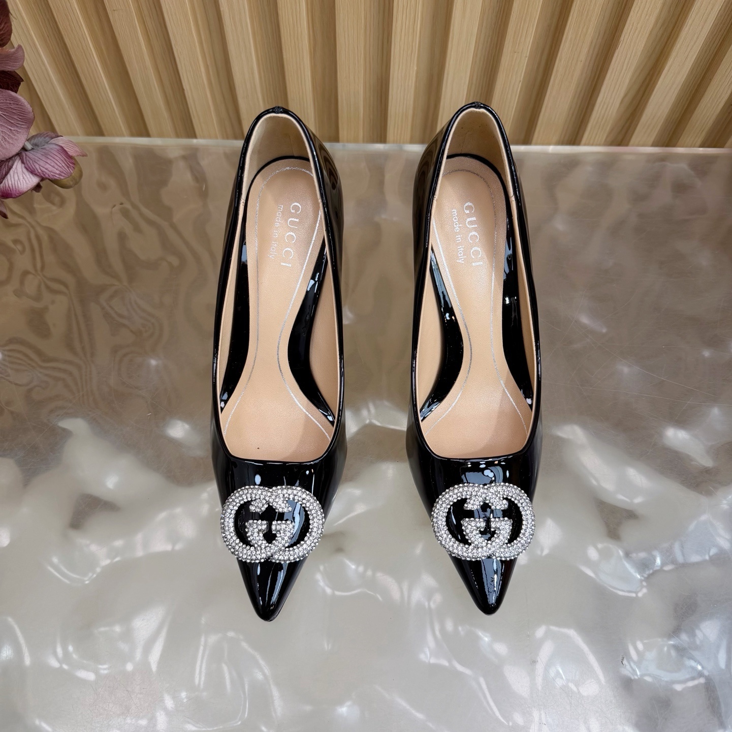 Gucci Black Patent Leather Pumps - Crystal Embellished