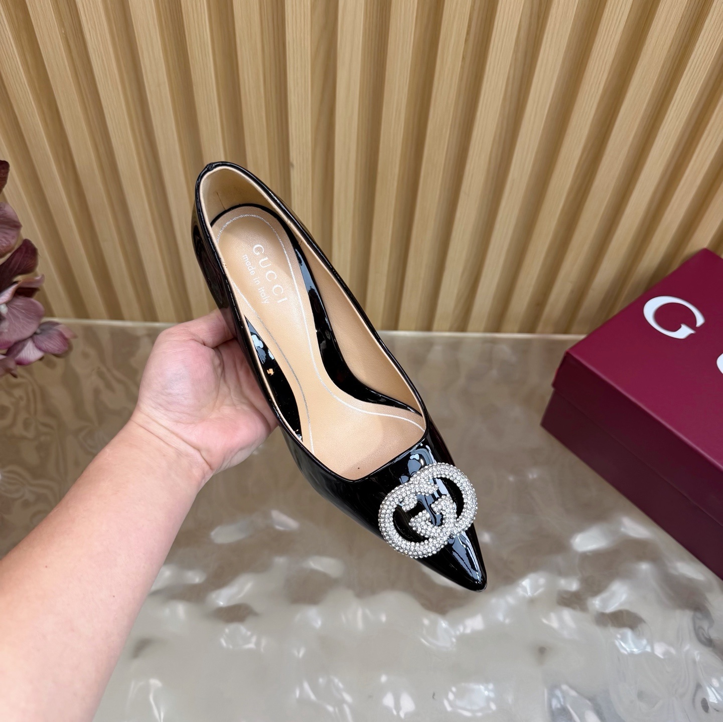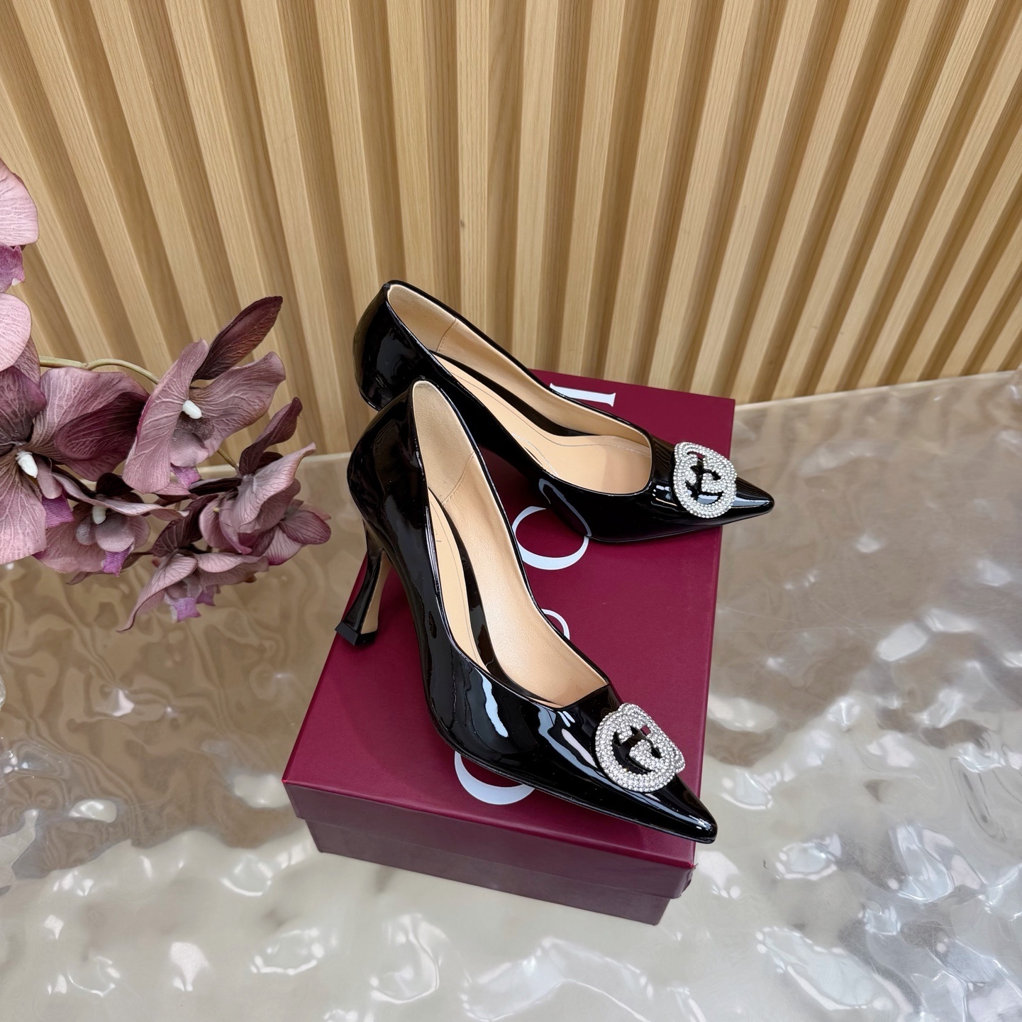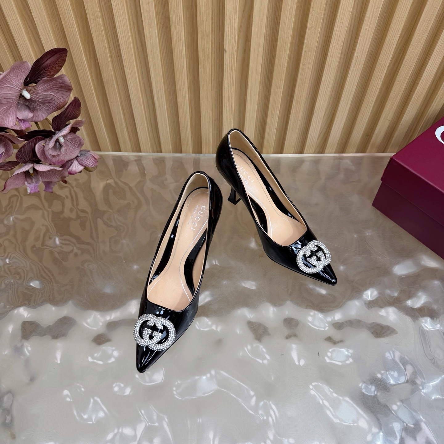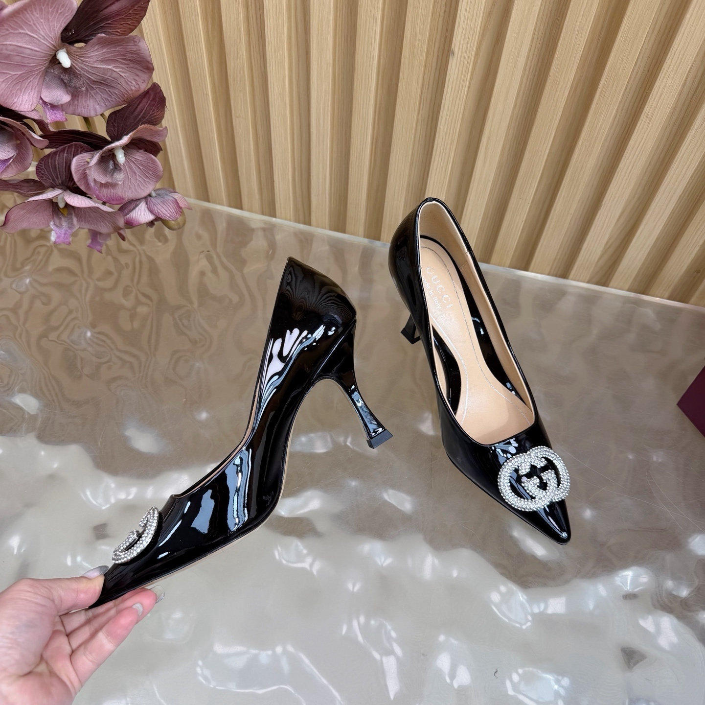 Gucci Black Patent Leather Pumps - Crystal Embellished