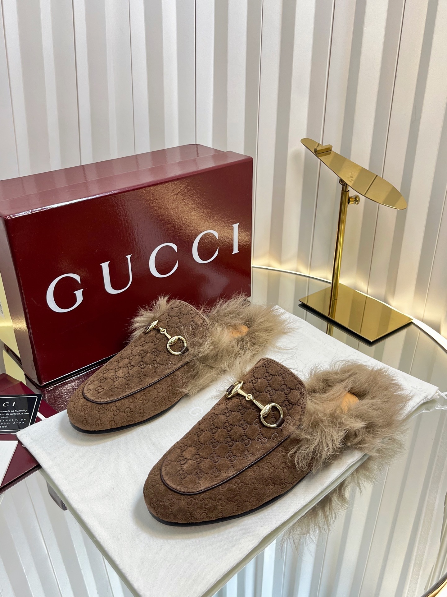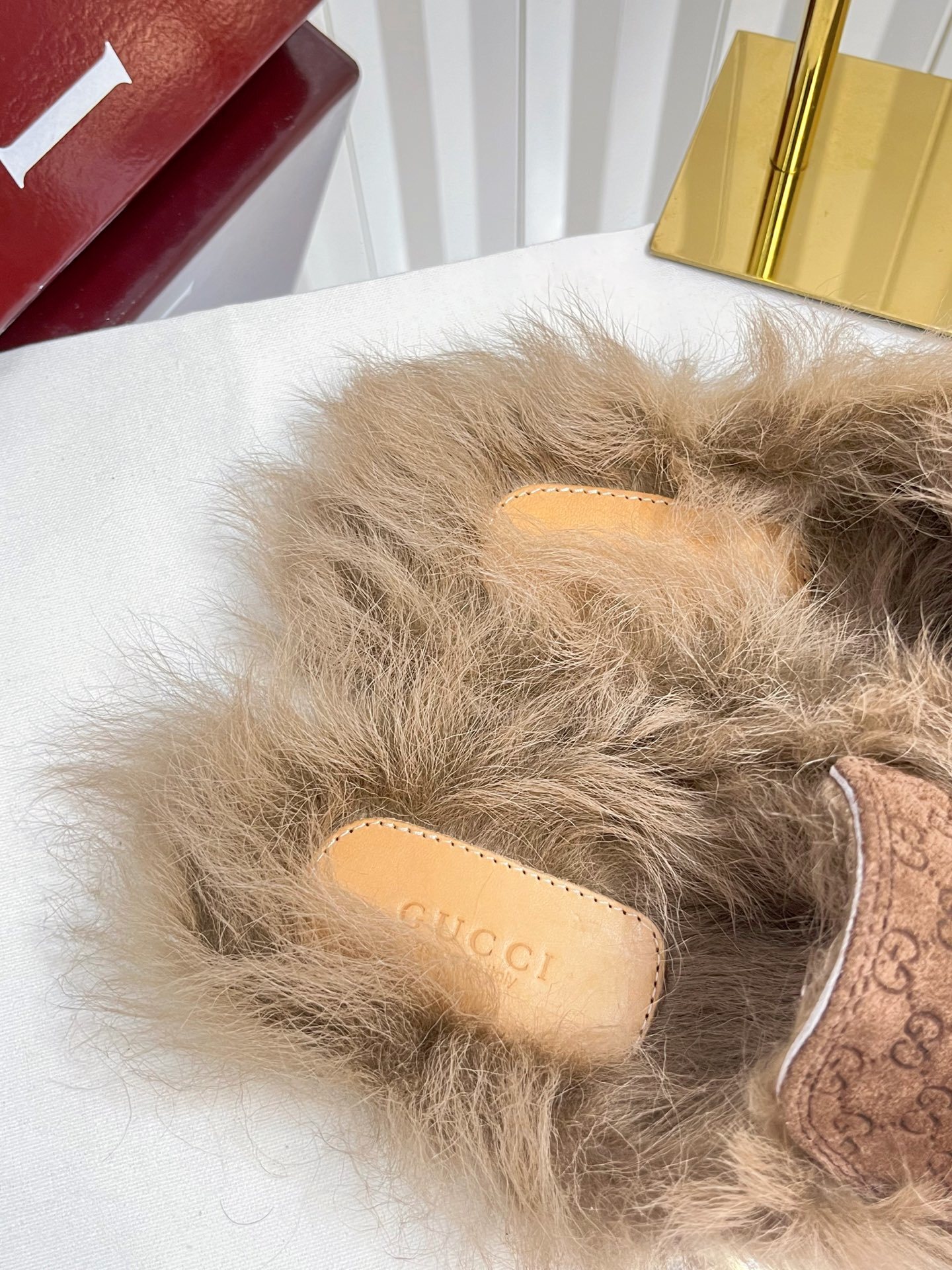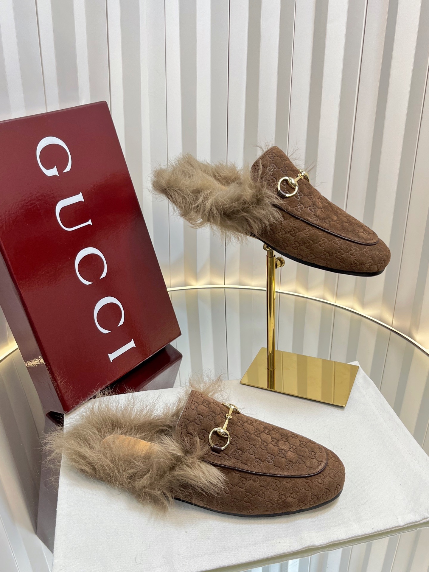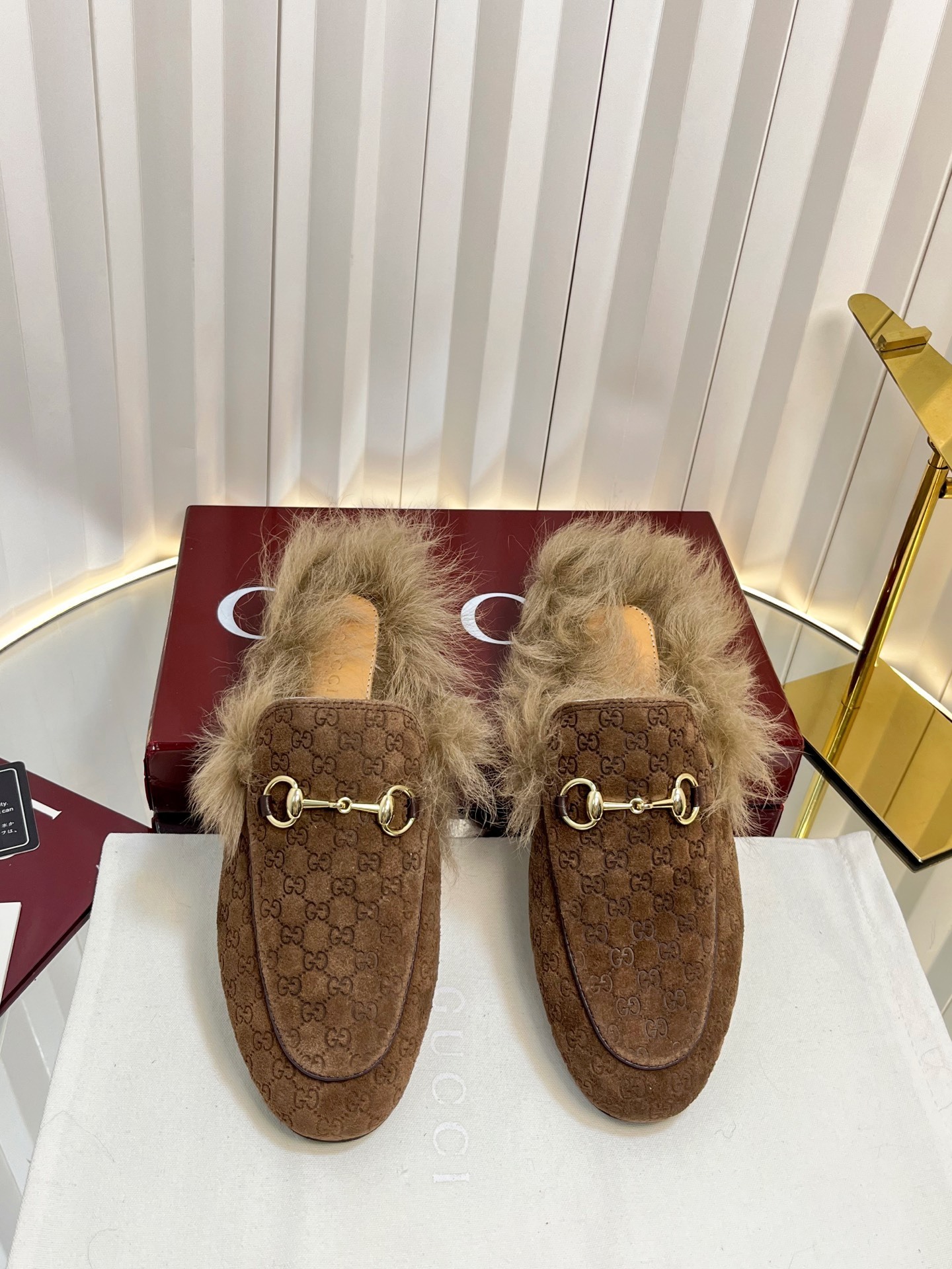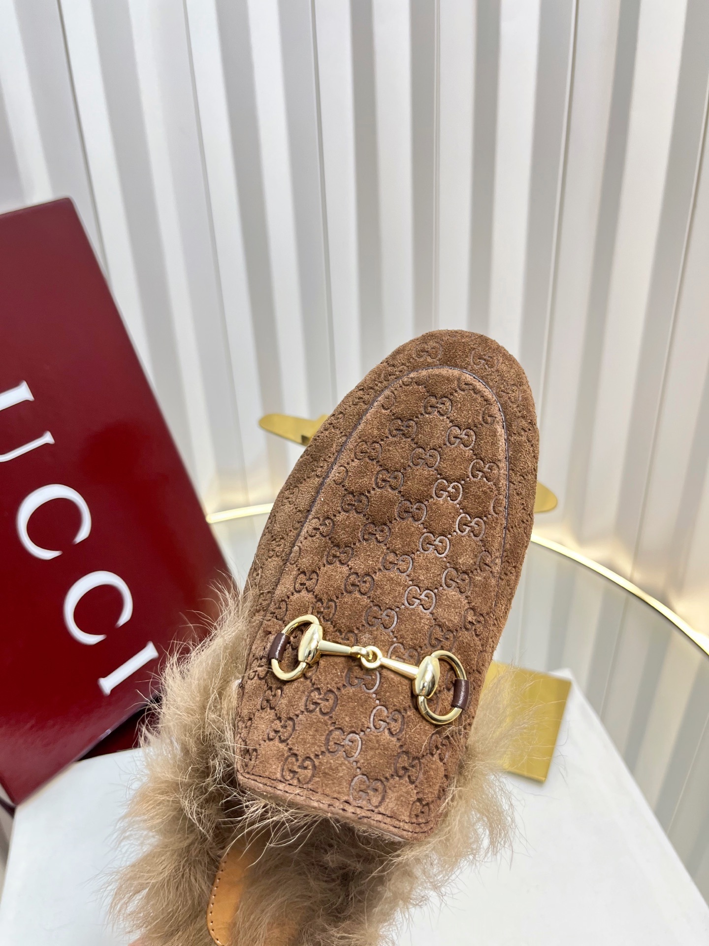 Gucci Brown GG Jacquard Loafers - Gucci Brown GG Jacquard Fur-Trimmed