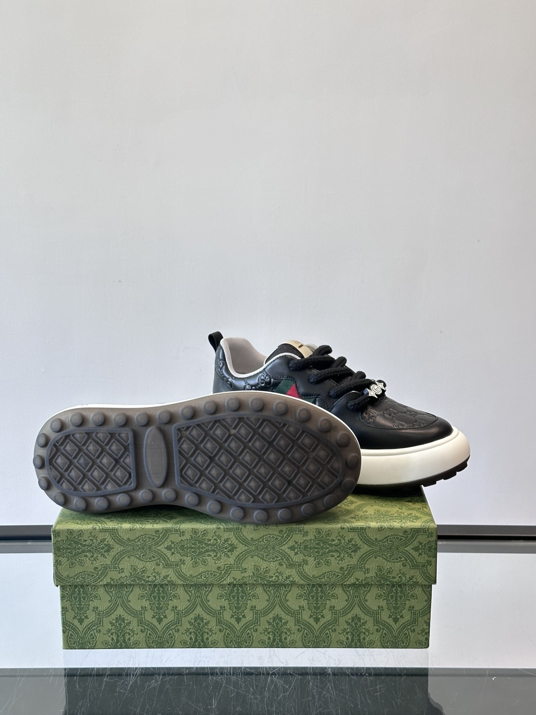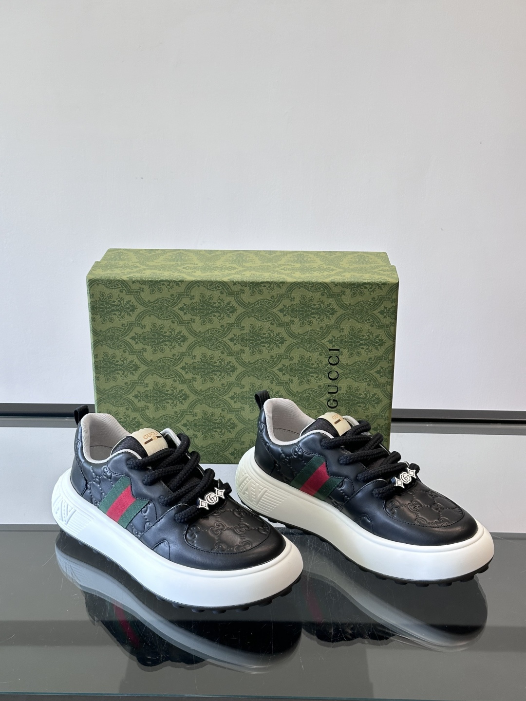 Gucci Men's GG Monogram Web Stripe Chunky Sneakers - Black