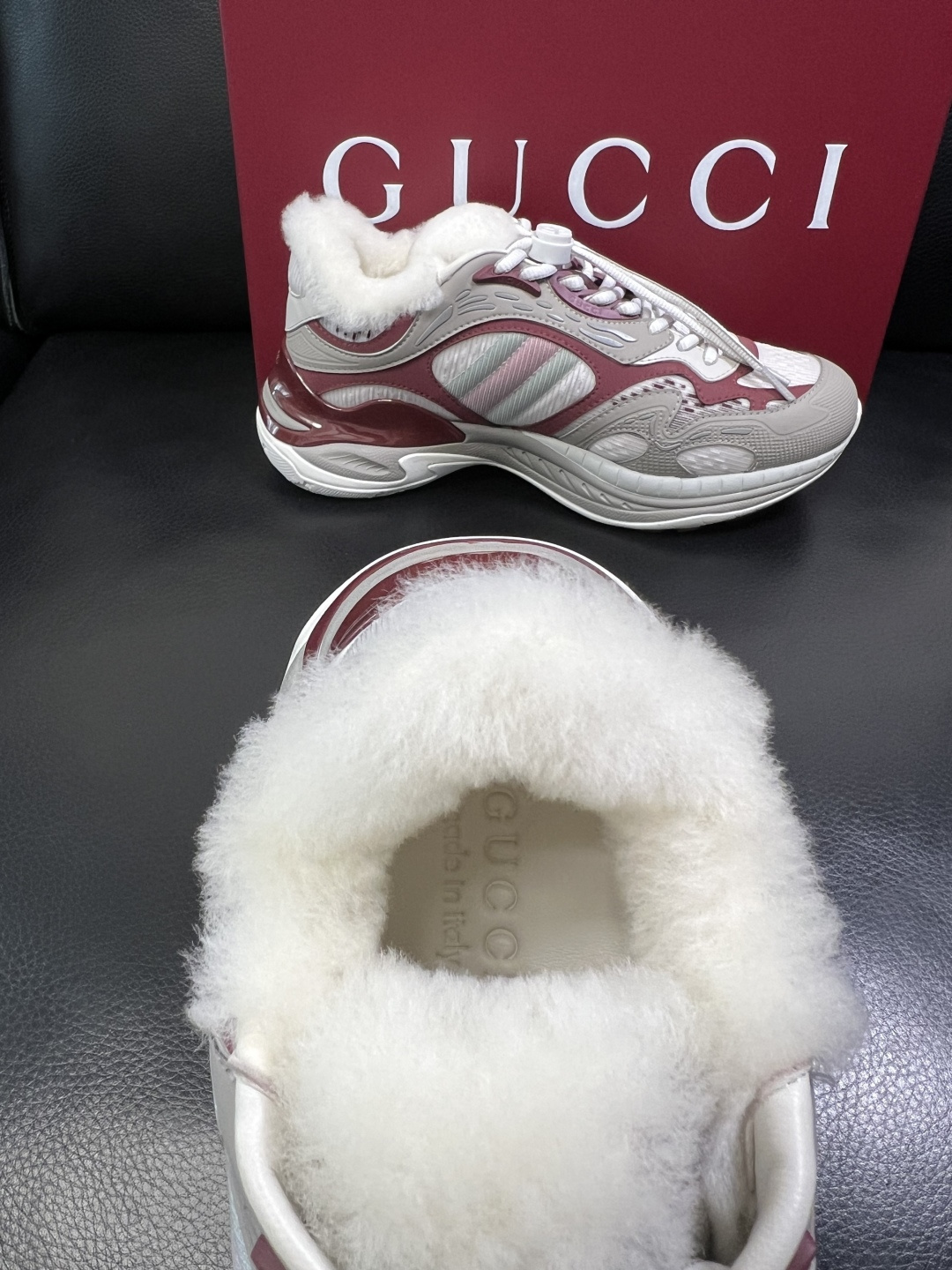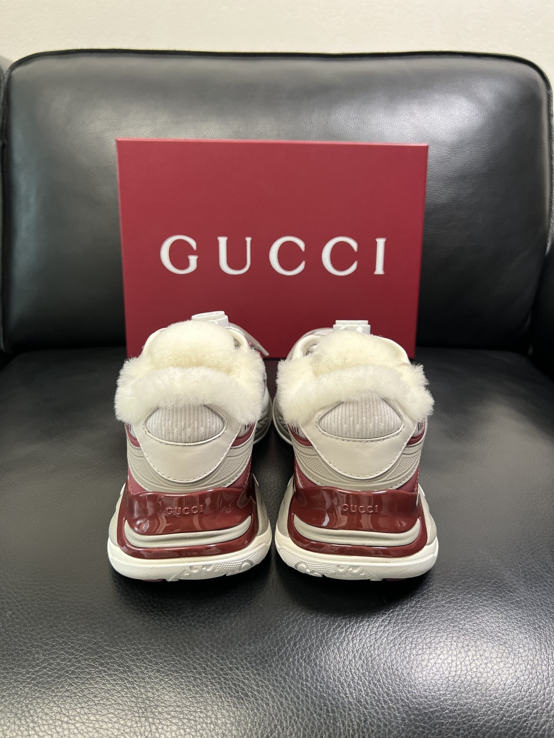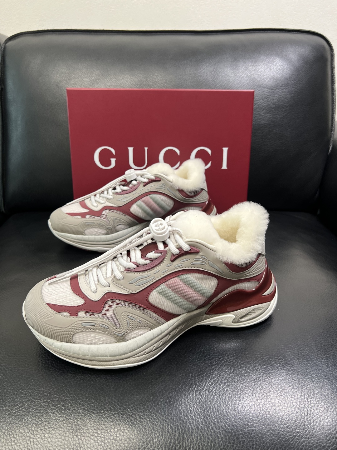 Gucci Men's Shearling-Lined Chunky Sneakers in Burgundy