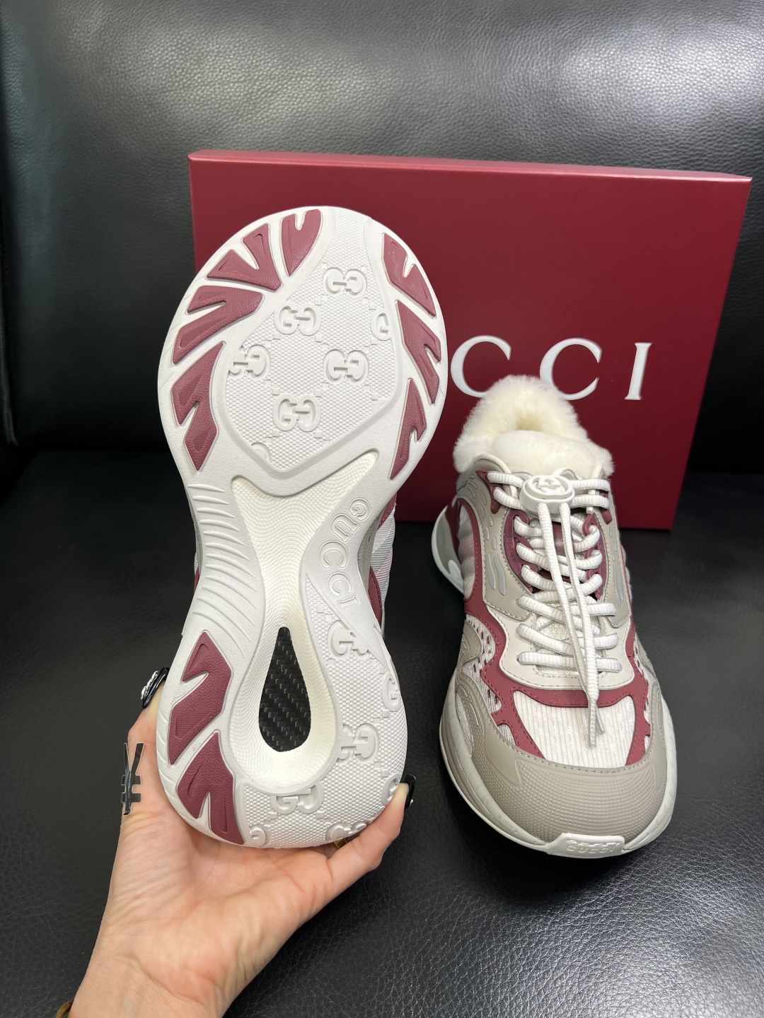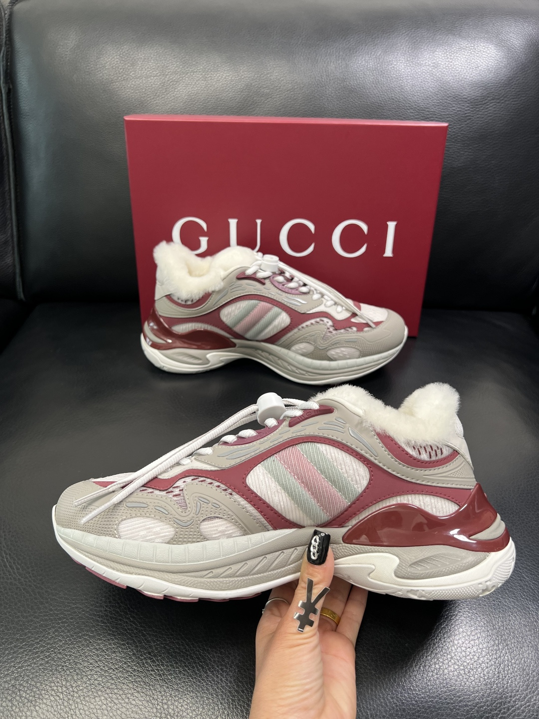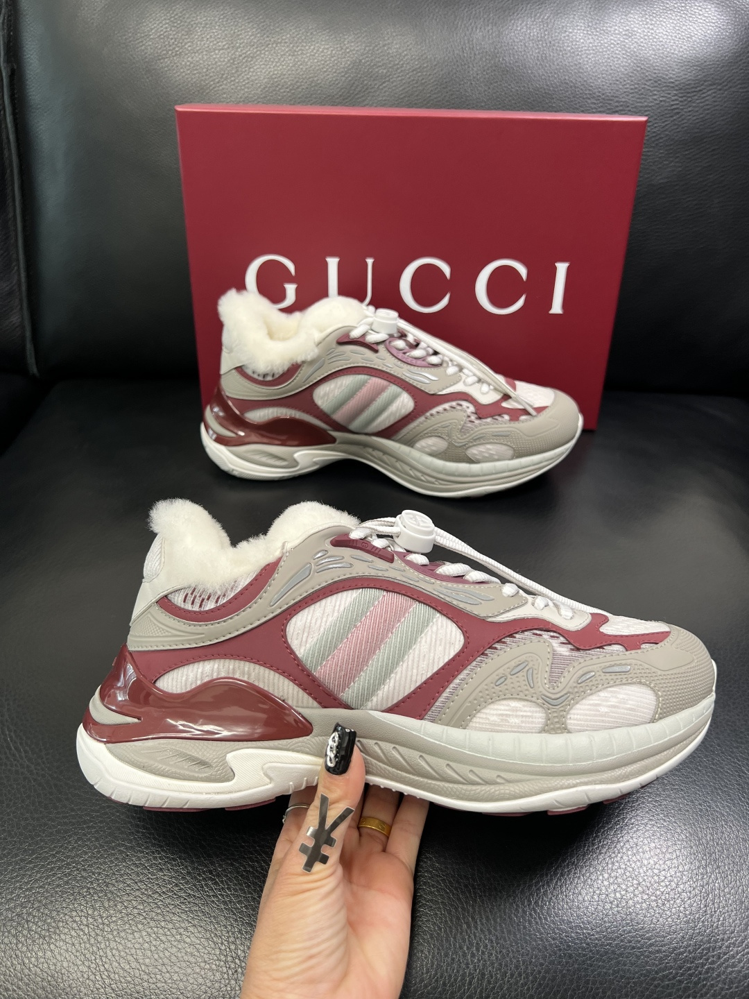 Gucci Men's Shearling-Lined Chunky Sneakers in Burgundy