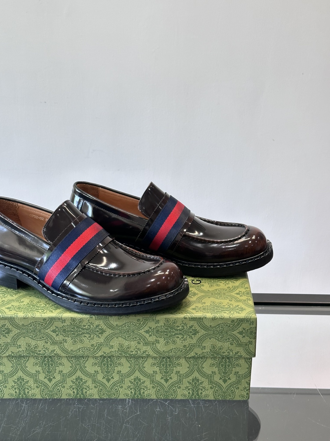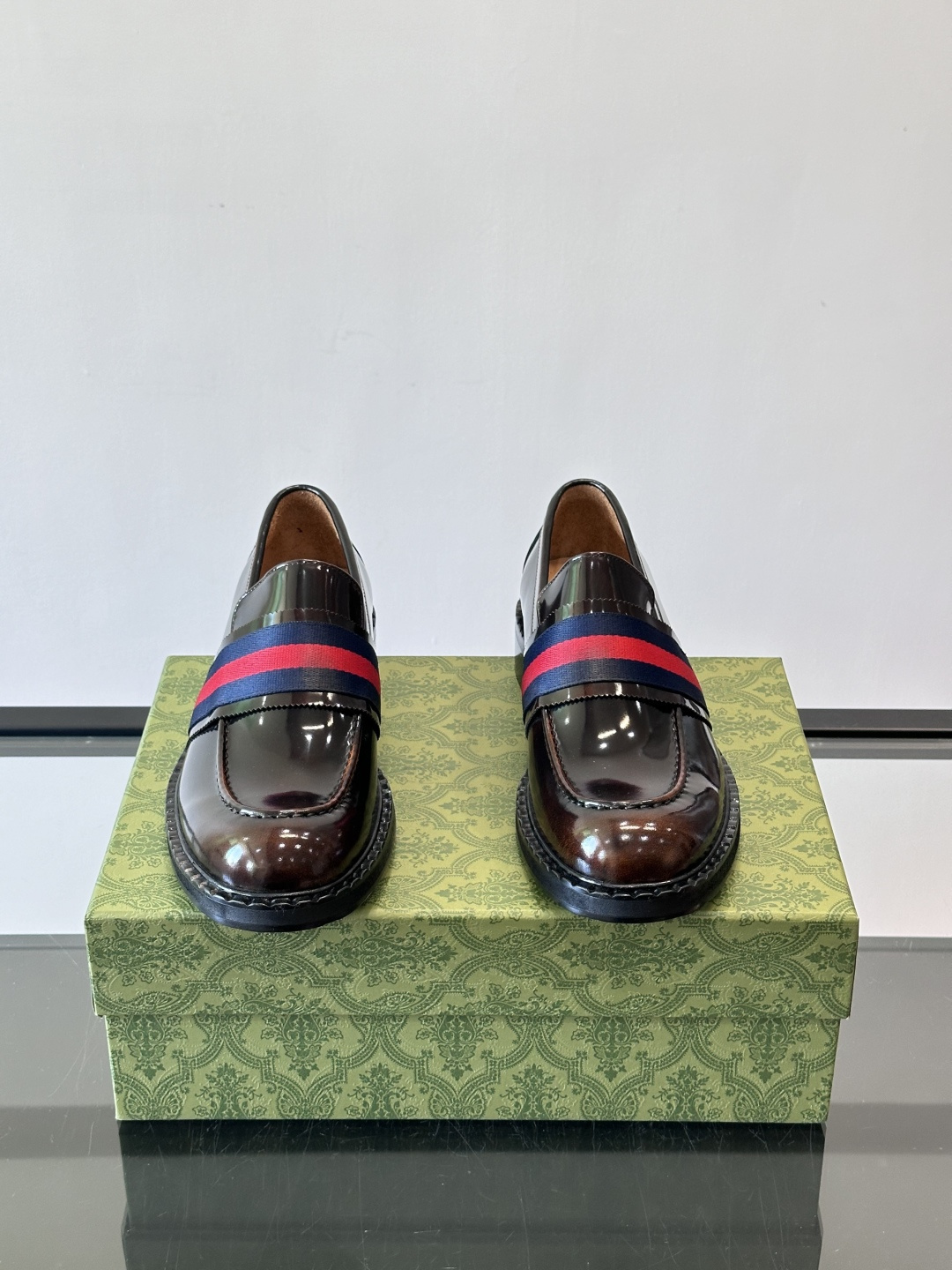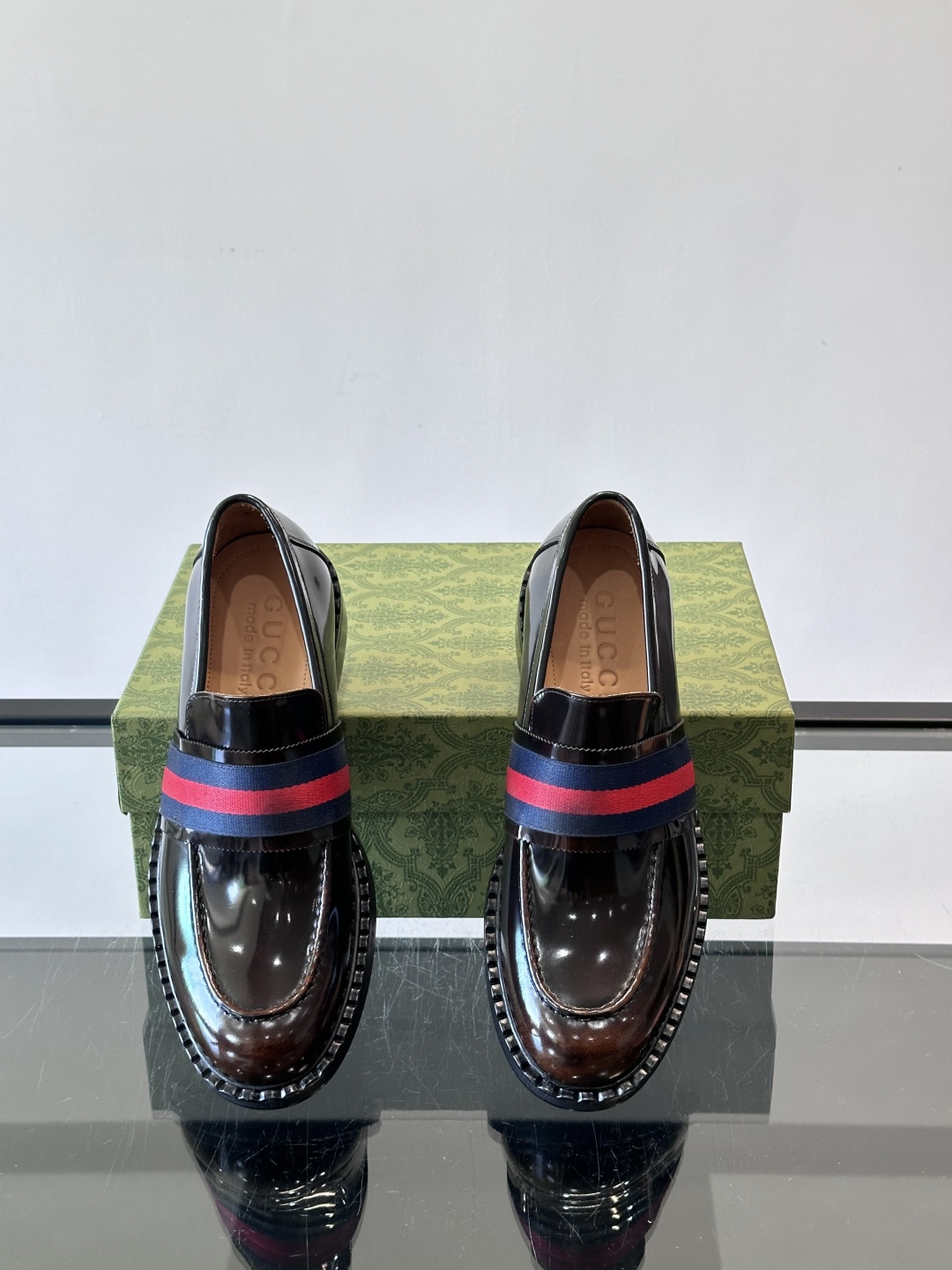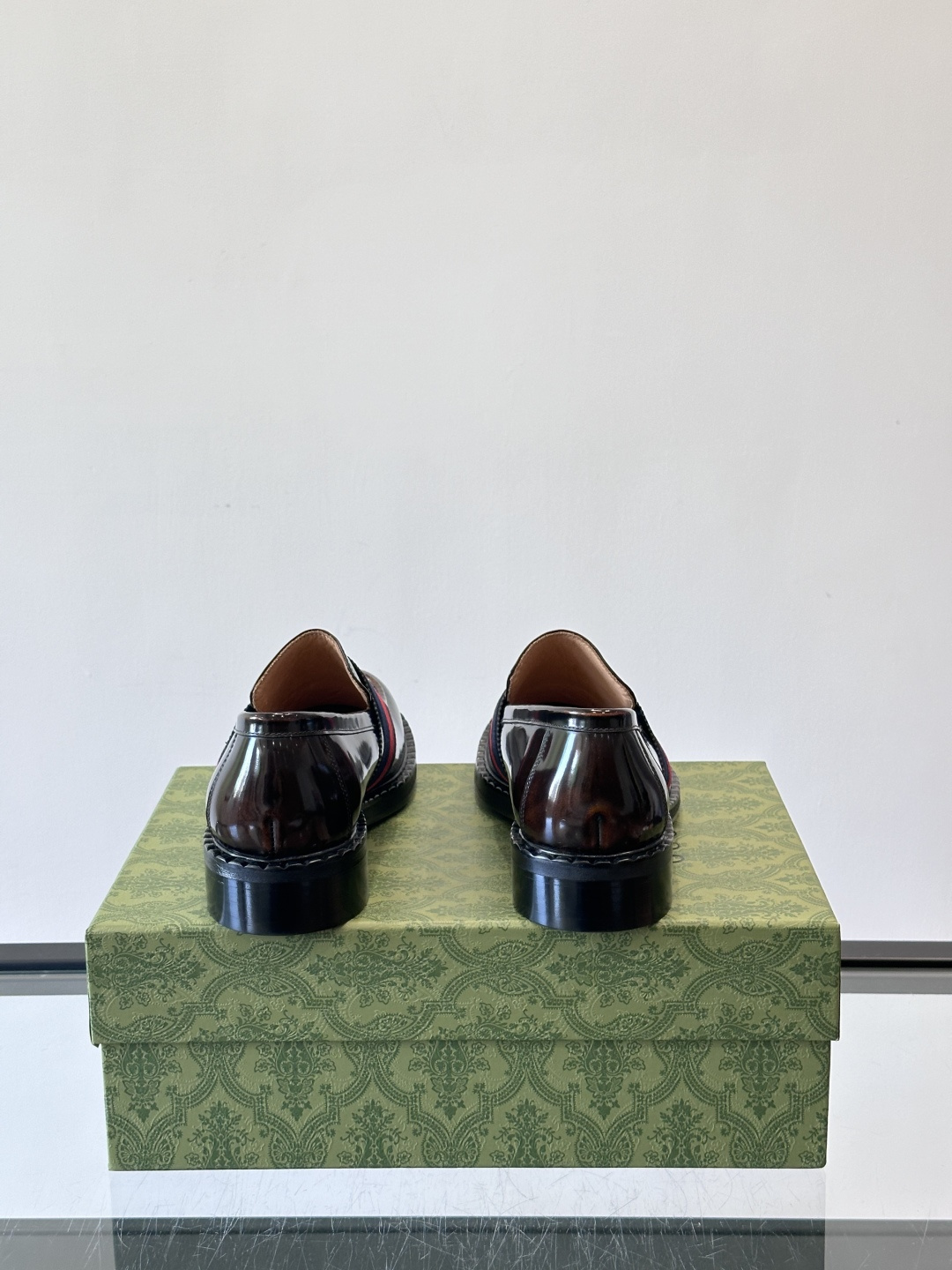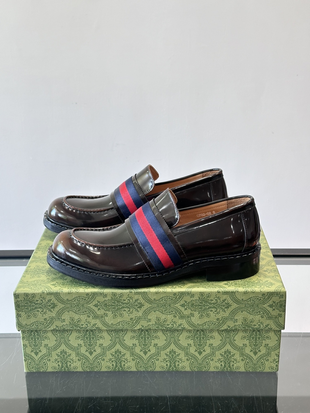 Gucci Men's Web Stripe Leather Loafers in Dark Brown