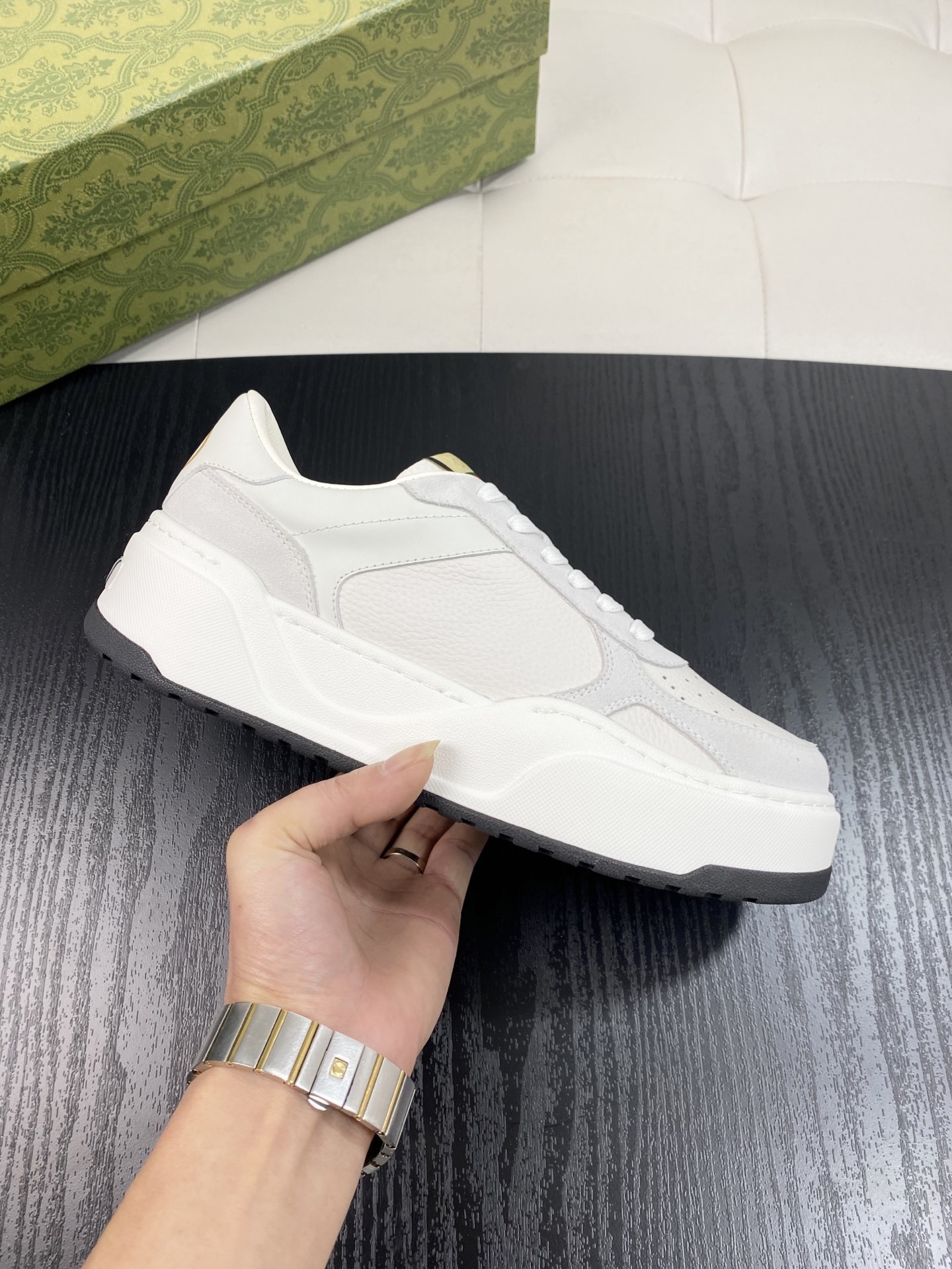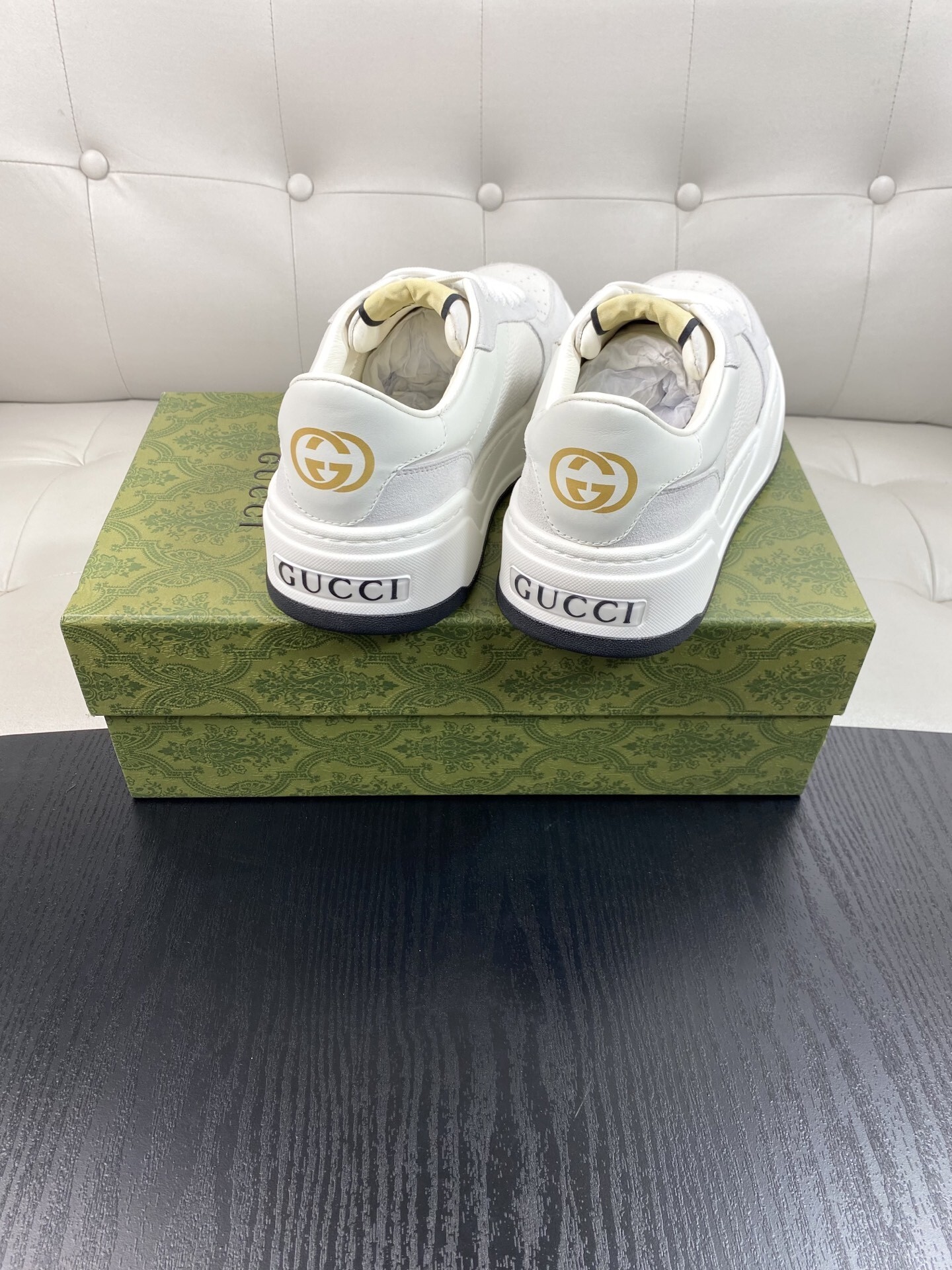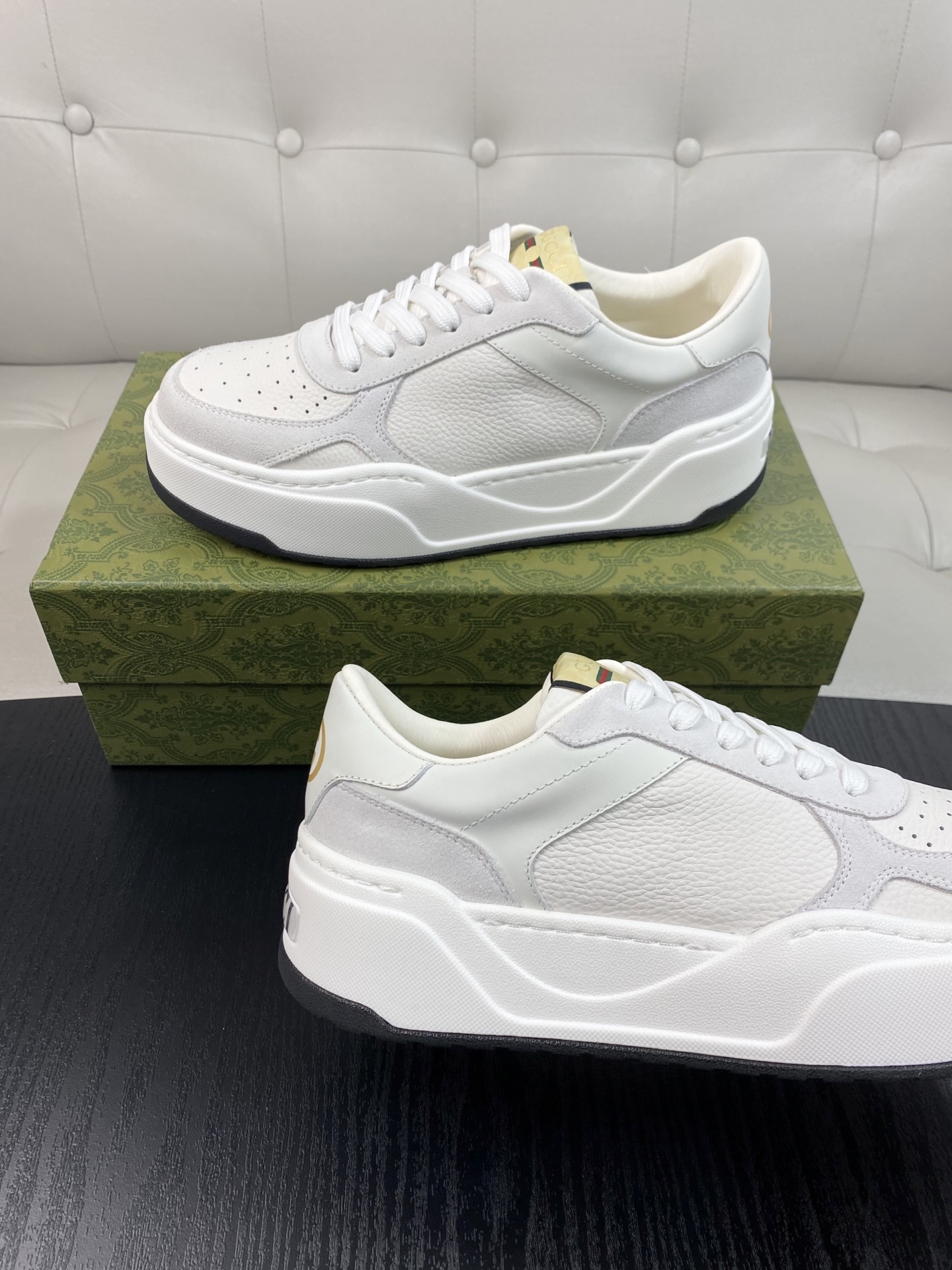 Gucci Men's White Leather Chunky Sneakers with Vintage Logo