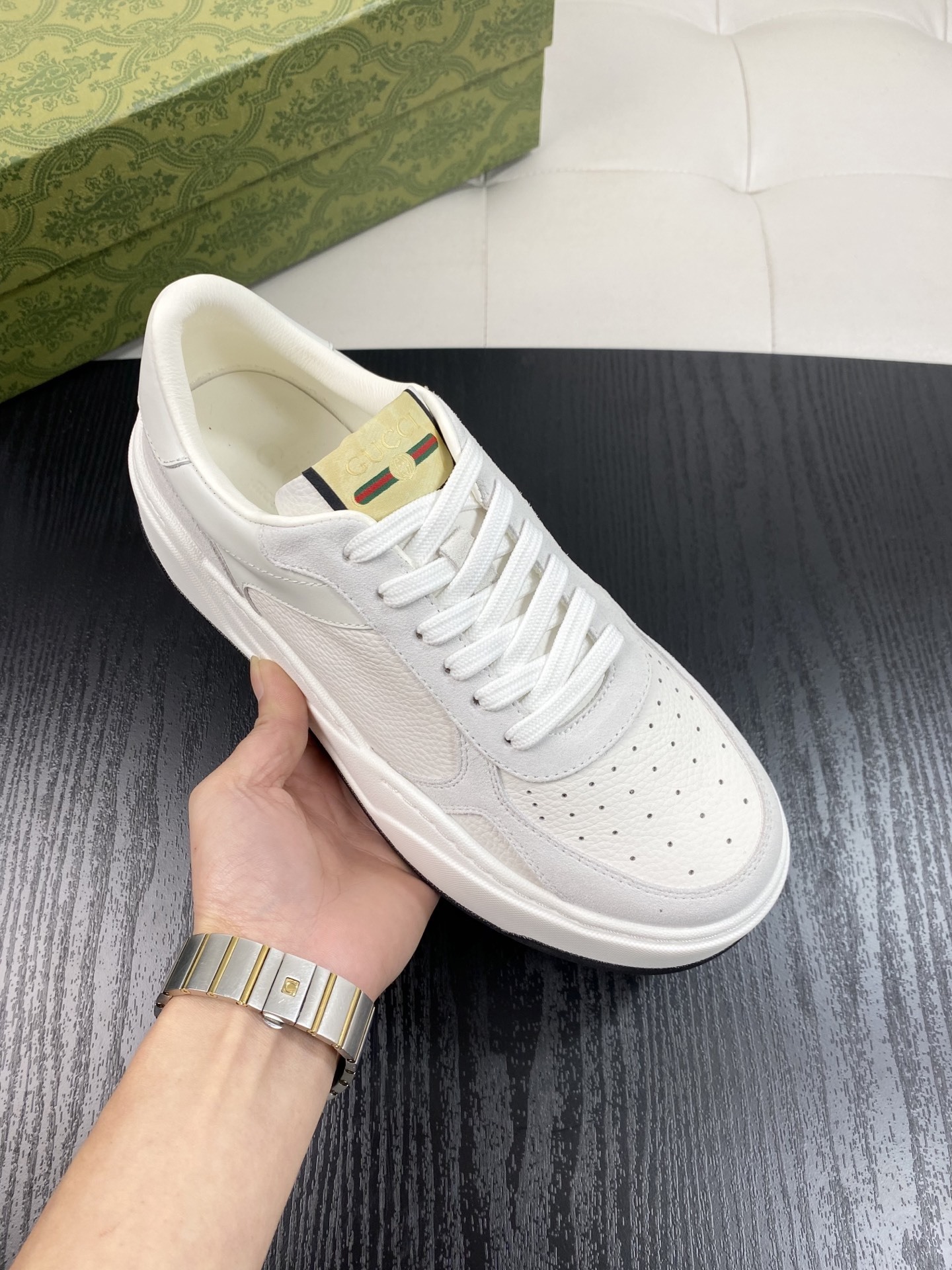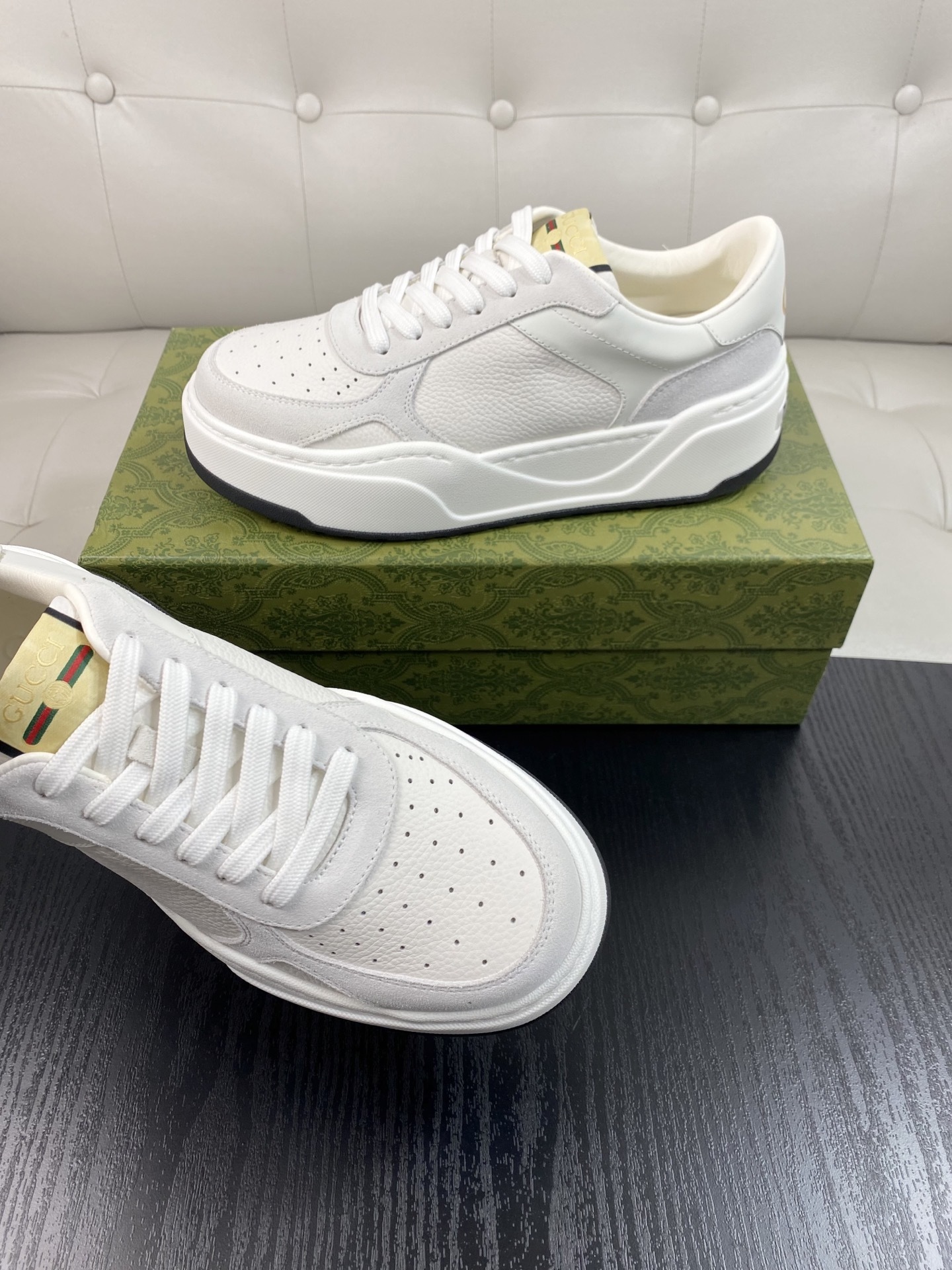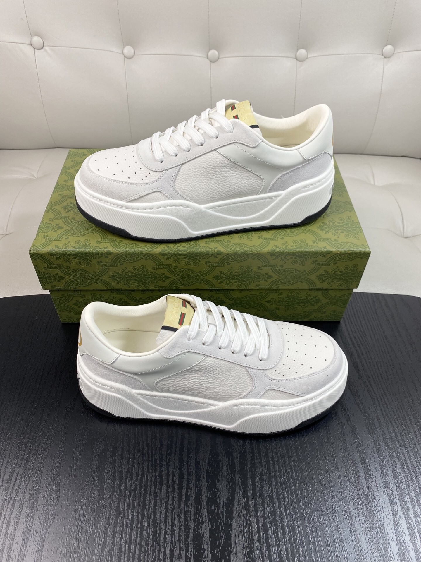 Gucci Men's White Leather Chunky Sneakers with Vintage Logo