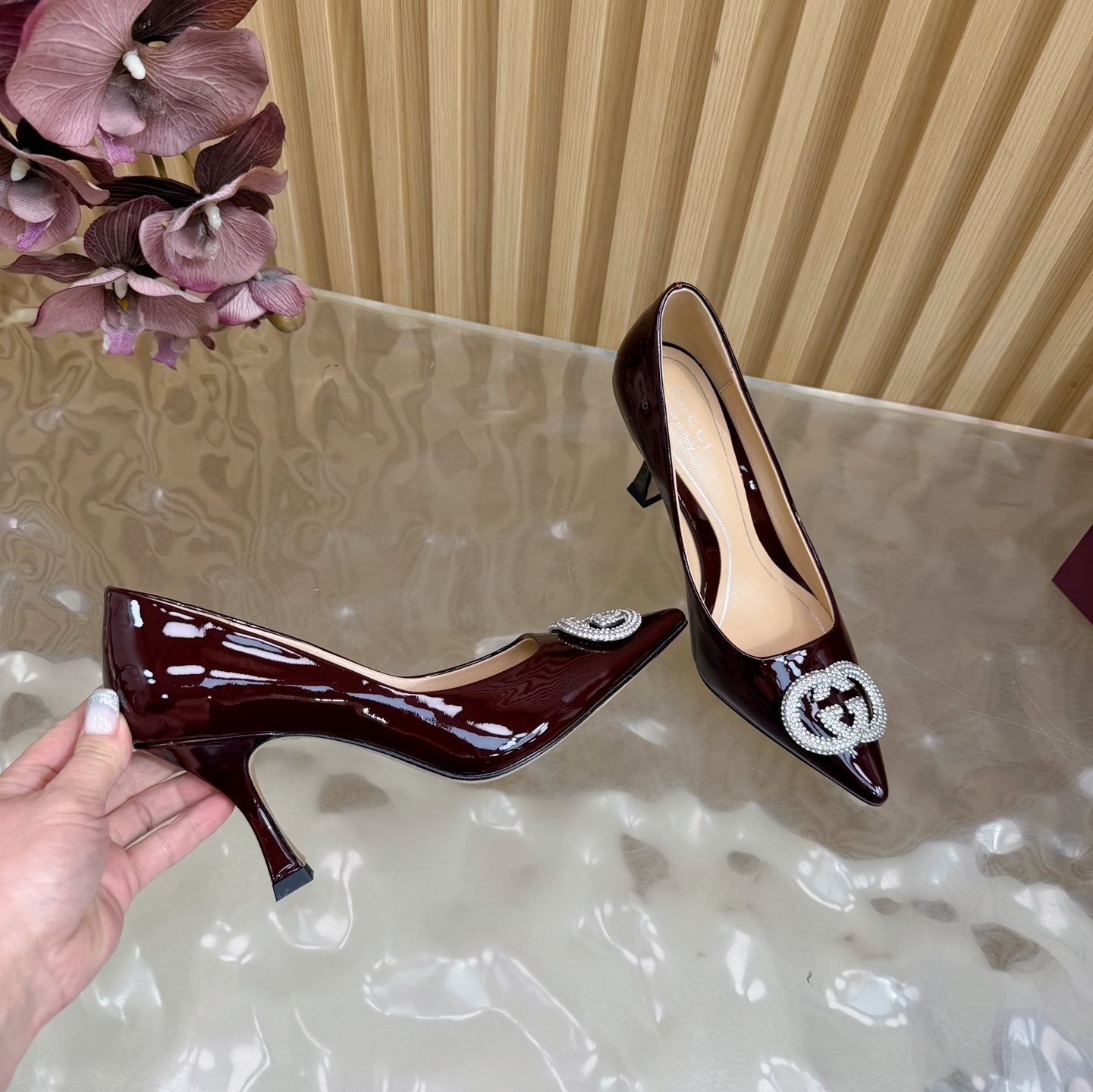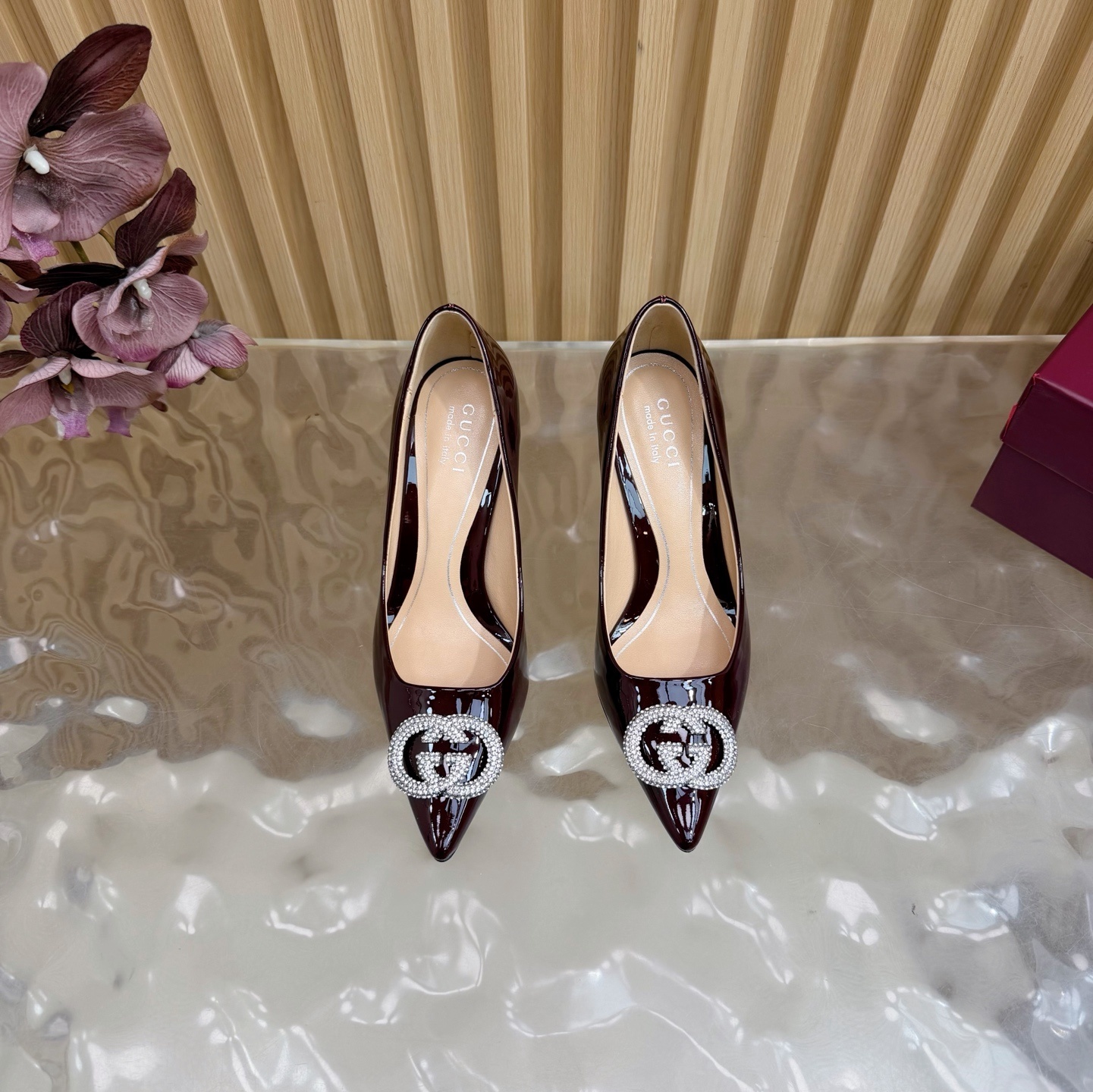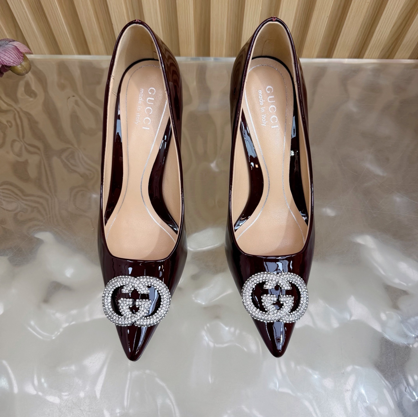 jeweled Gucci Burgundy Patent Leather Pumps - Gucci Burgundy Patent