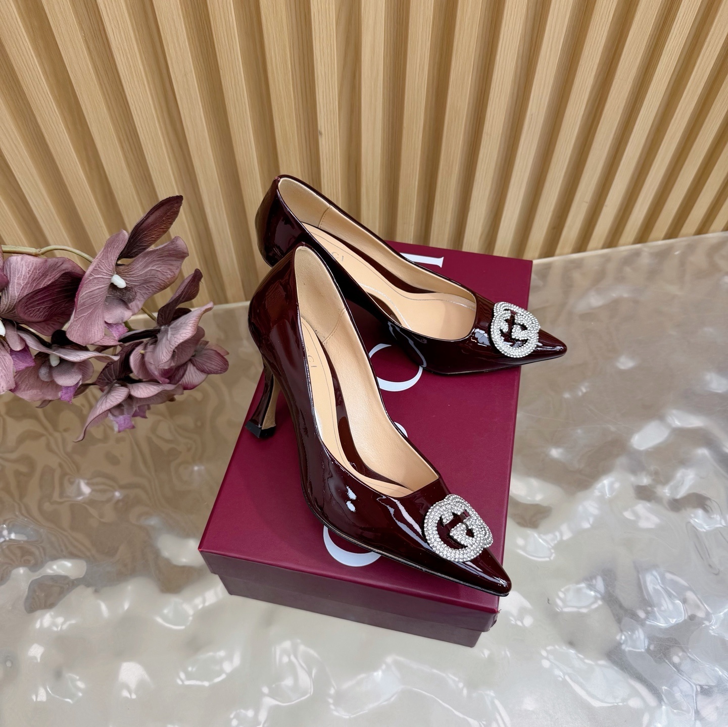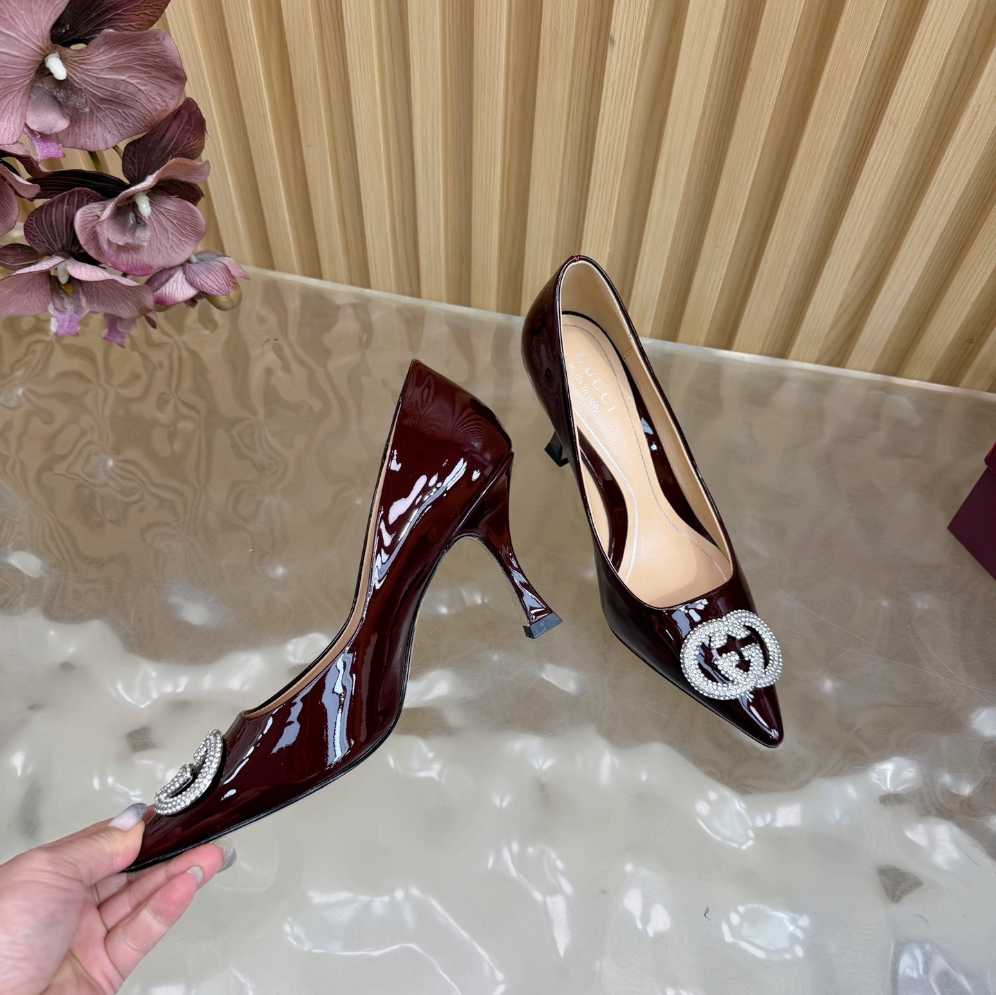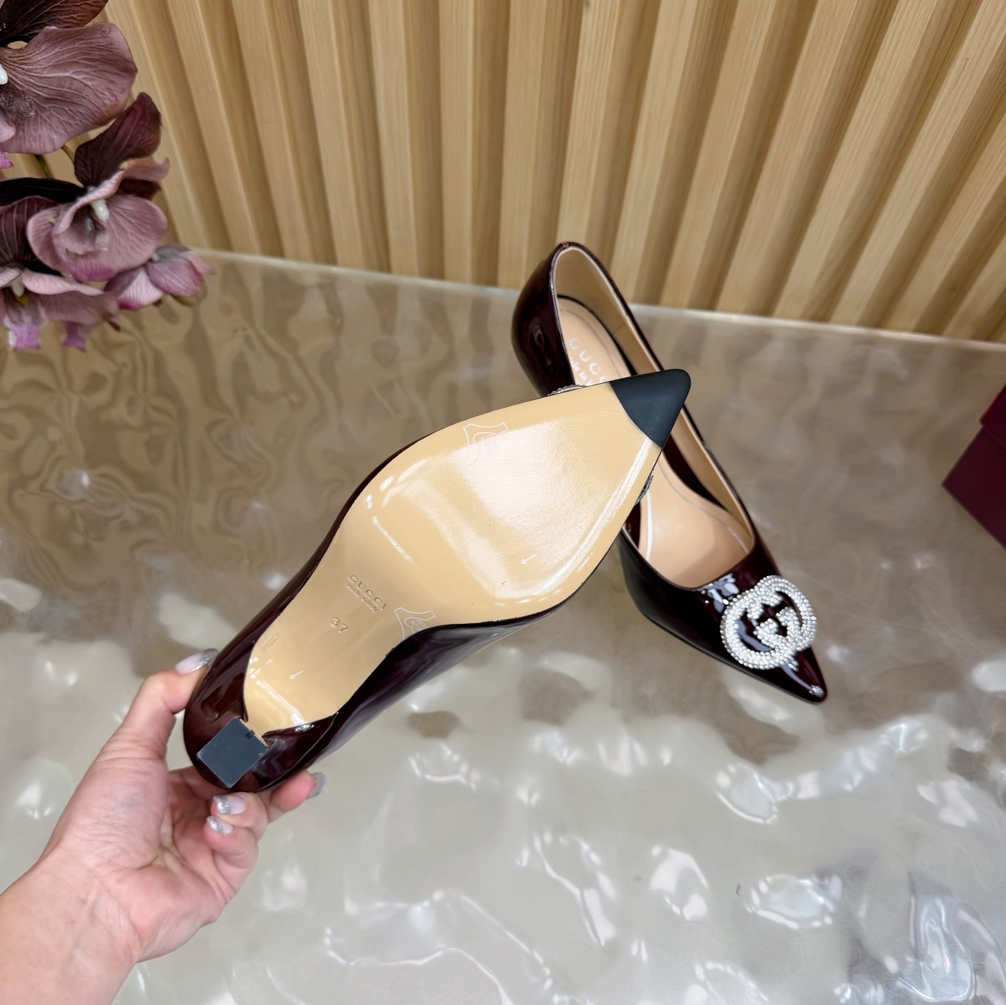 jeweled Gucci Burgundy Patent Leather Pumps - Gucci Burgundy Patent