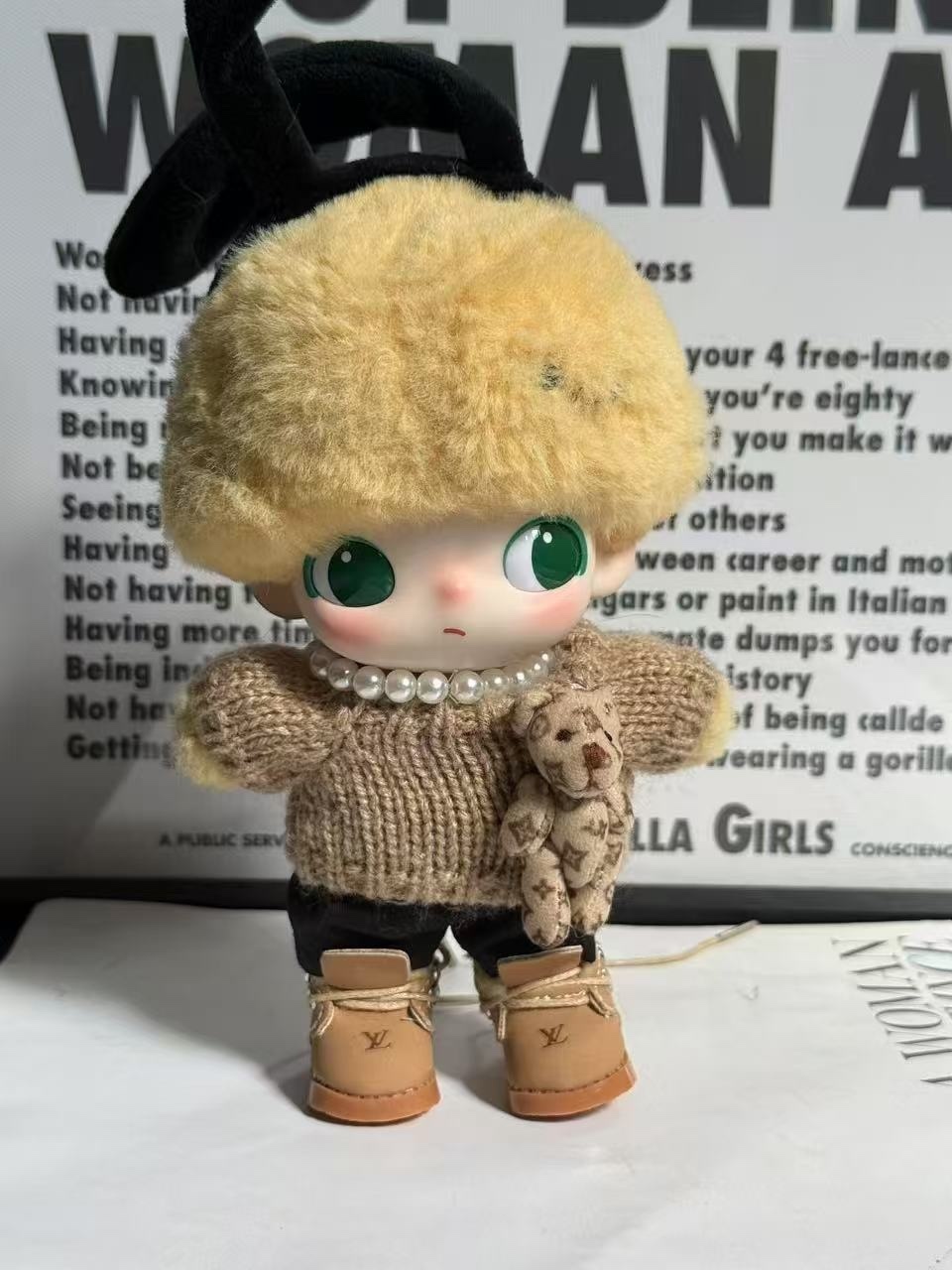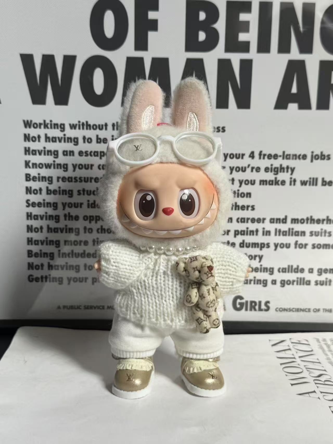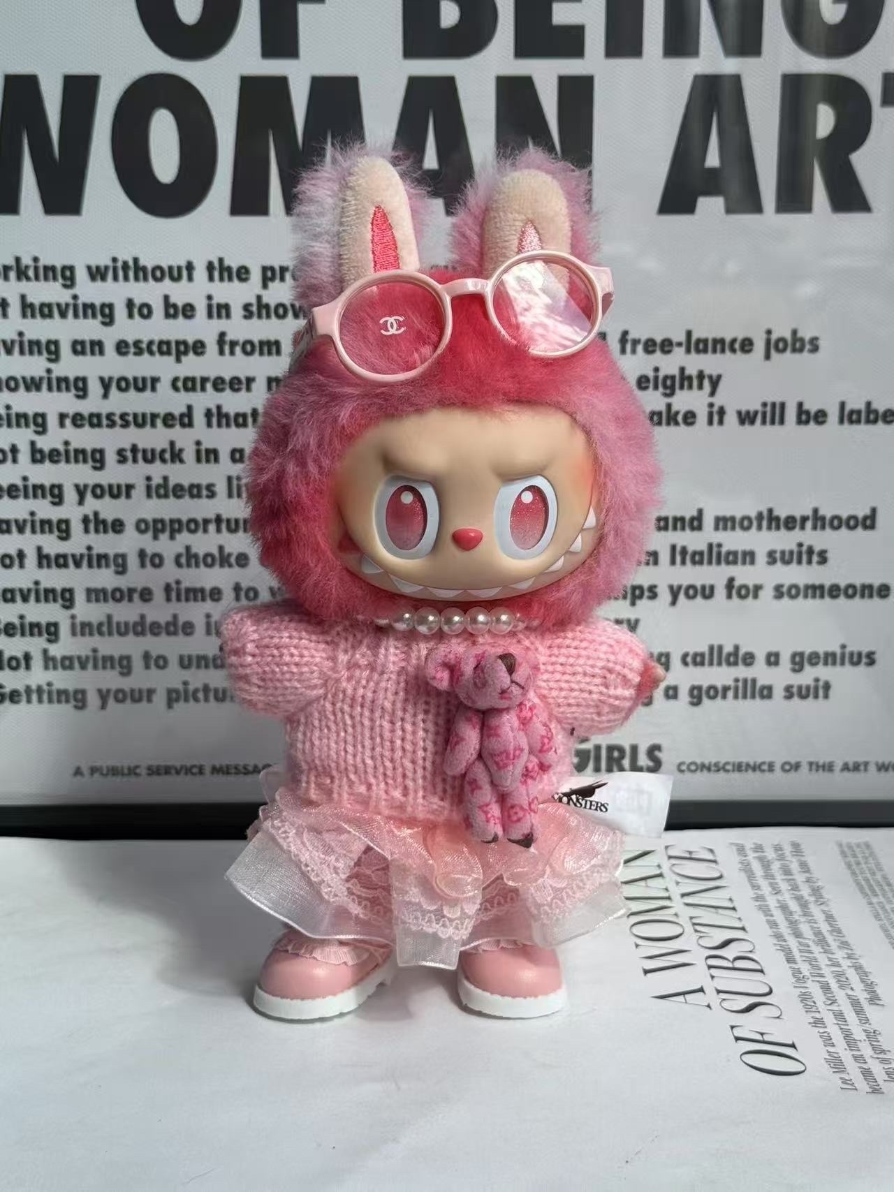 - Sweet Labubu: Wearing a cute knit sweater, a lace skirt, and carrying a tiny teddy bear, this Labubu is the epitome of sweetness.